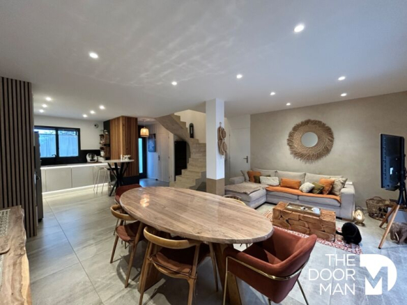 1 coté, récente (2019) de type traditionnelle encore sous garantie décennale, en copropriété, offrant 5 pièces principales sur environ 102 m² habitables, édifiée sur un terrain d’environ 337 m².