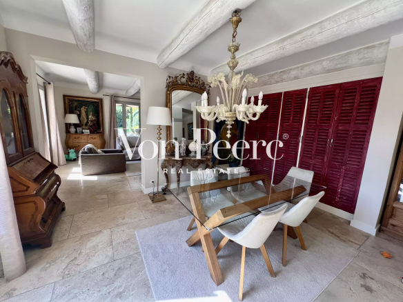 Cette maison de style provençal, située à pied du centre ville, se compose d’un salon avec cheminée ouvert sur le jardin, d’une cuisine/salle à manger conviviale et fonctionnelle avec son arrière cusine, de 4 chambres en suite et d’un bureau.