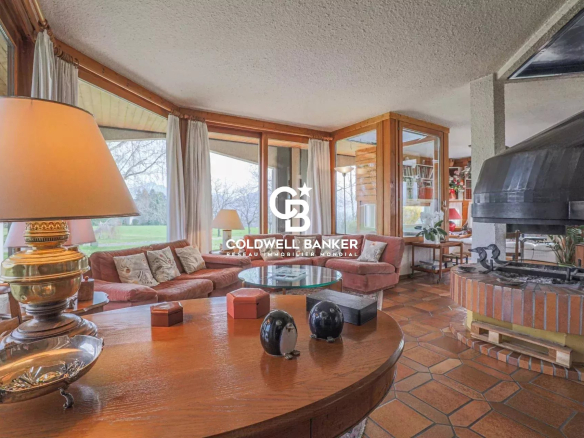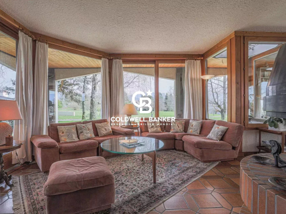 A quelques minutes de Genève. nous proposons une maison offrant une vue panoramique sur les montagnes dans un cadre paisible. Le terrain spacieux de 4197 m2 est orné de magnifiques arbres et d’un jardin bien entretenu. Cet endroit constitue un véritable refuge paisible avec 250 mètres carrés créés par un architecte réputé.