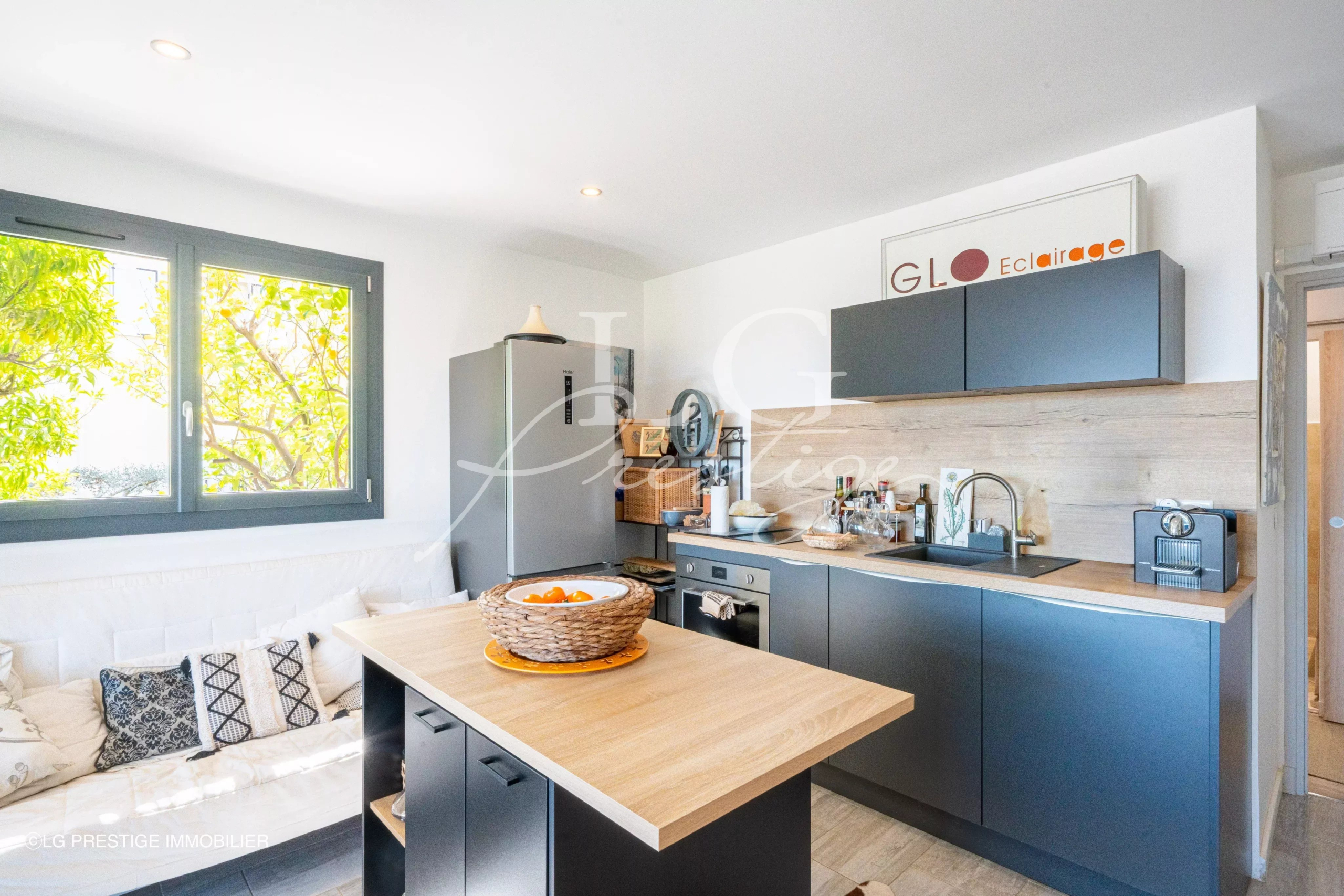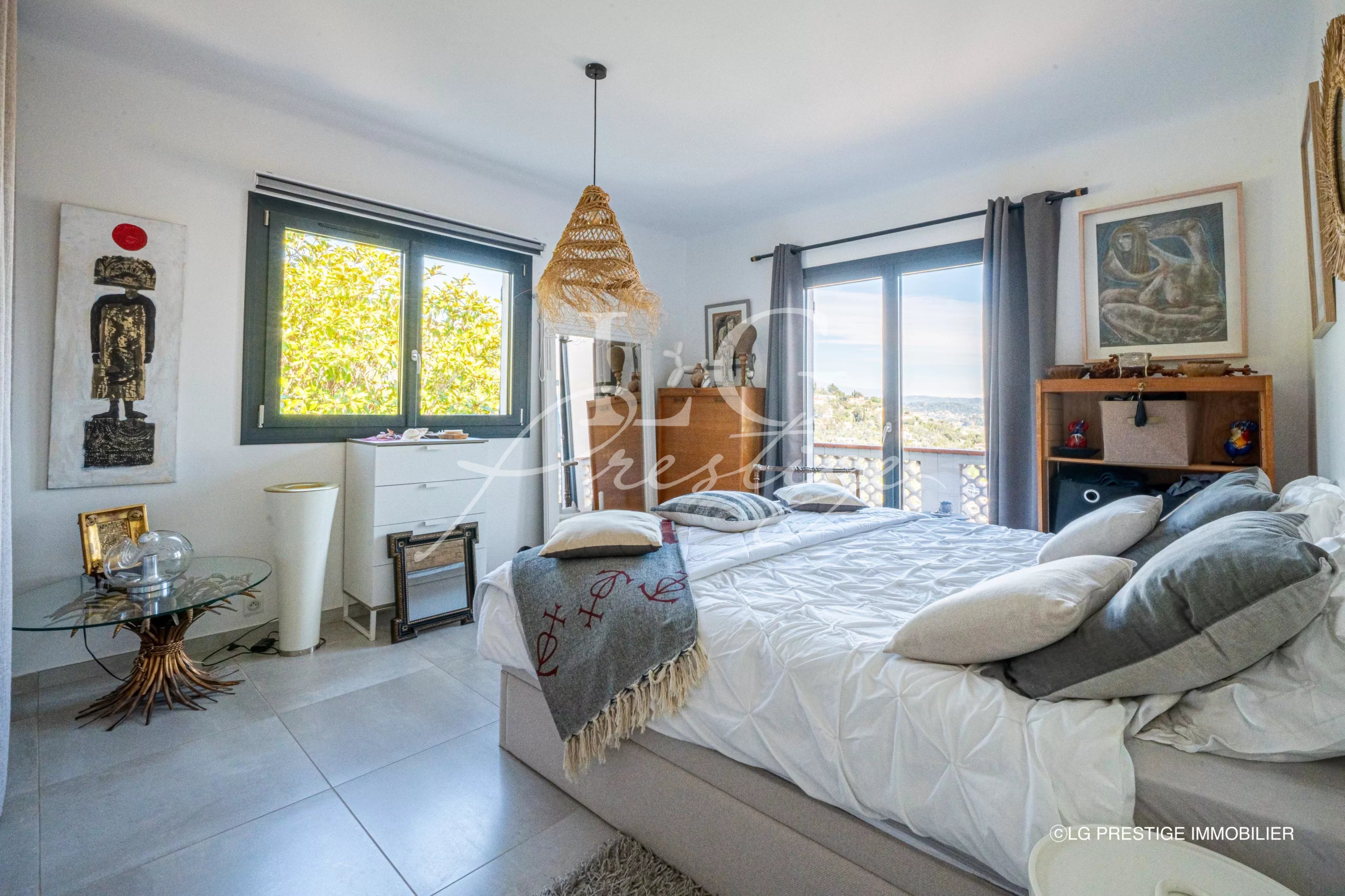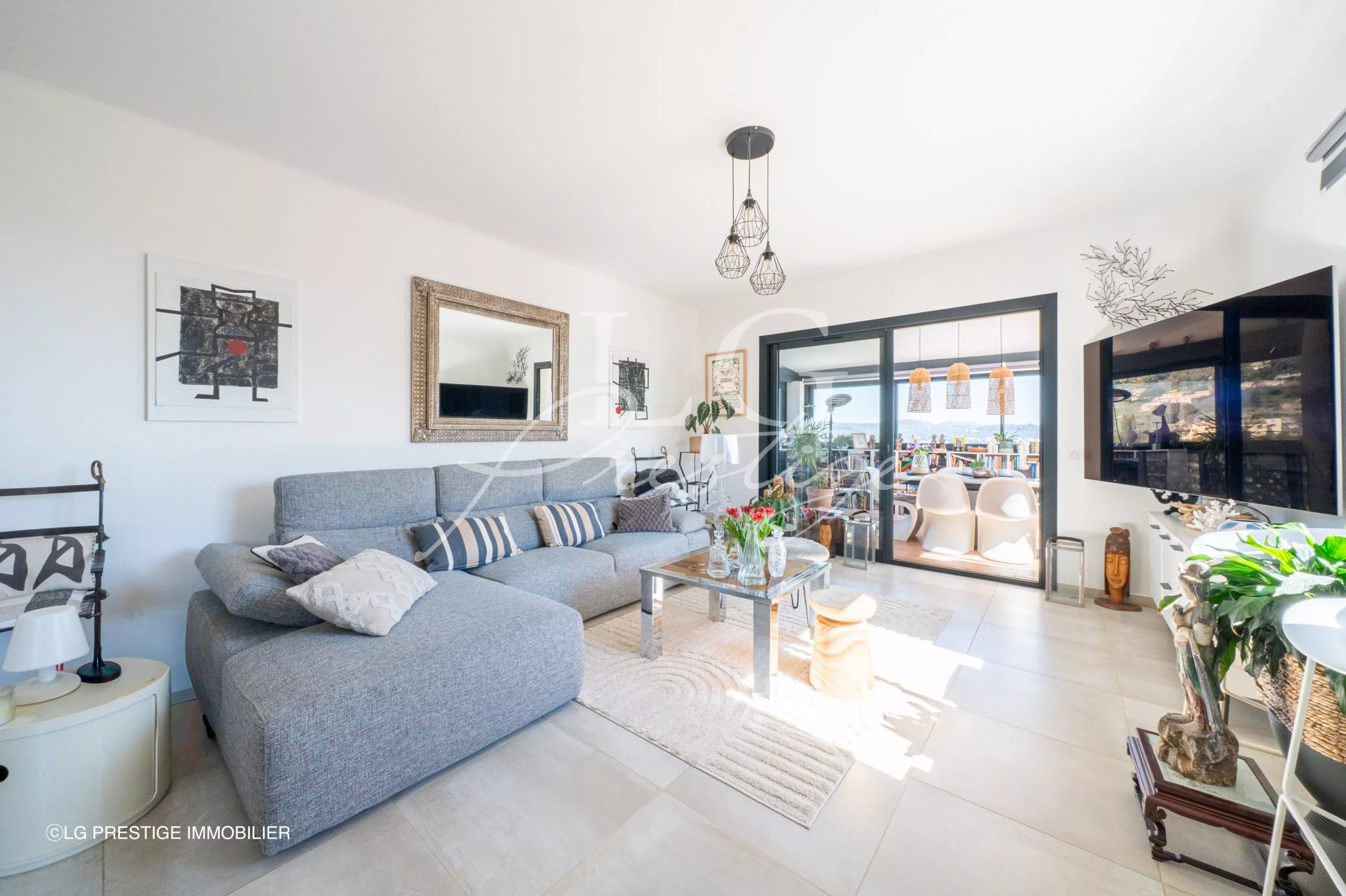Belle maison de 175 m² entièrement rénovée, offrant une superbe vue dégagée sur la mer, les îles de Lérins, les collines et les montagnes, idéalement située à 5 minutes à pied des commerces, dans un quartier calme et prisé sur les hauteurs du centre-ville.