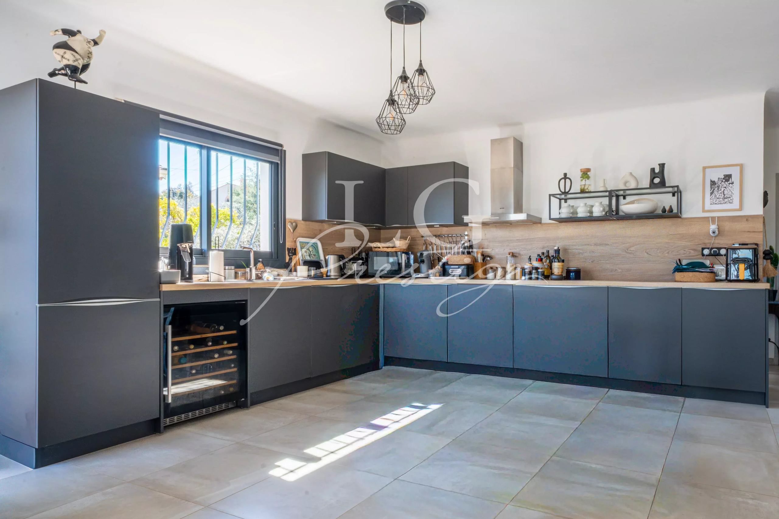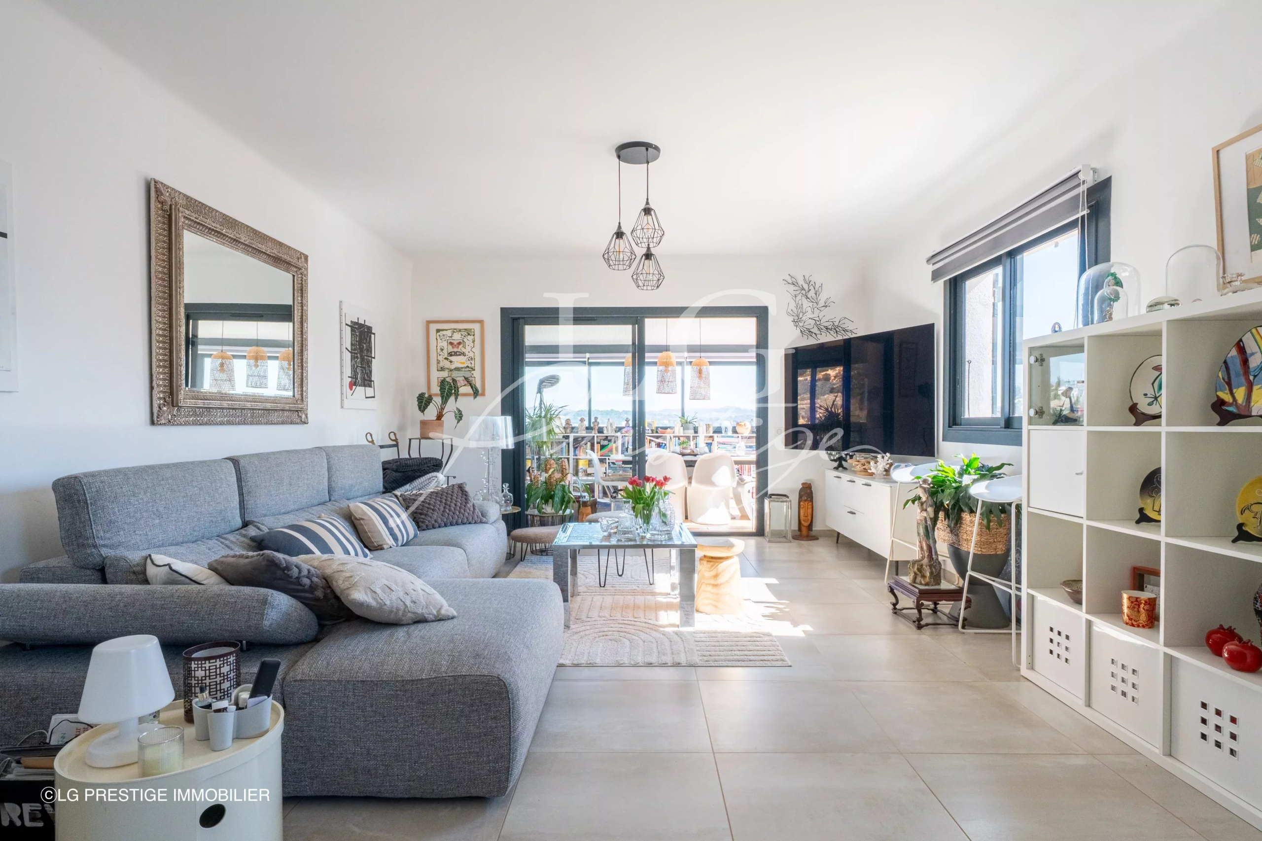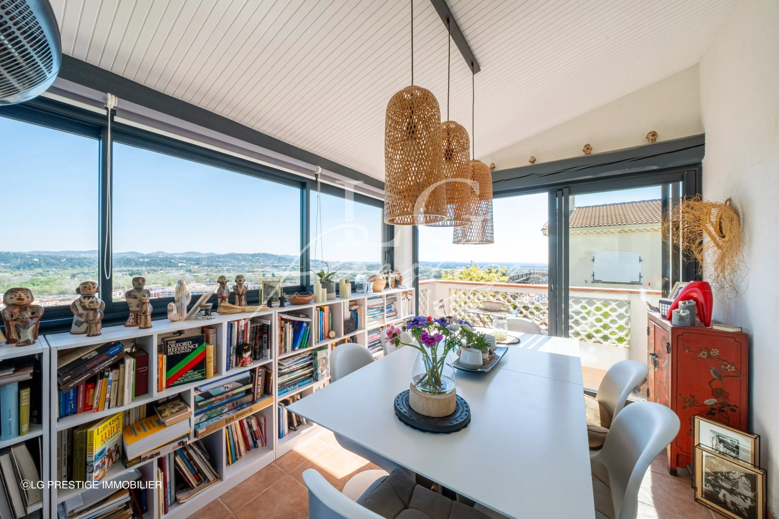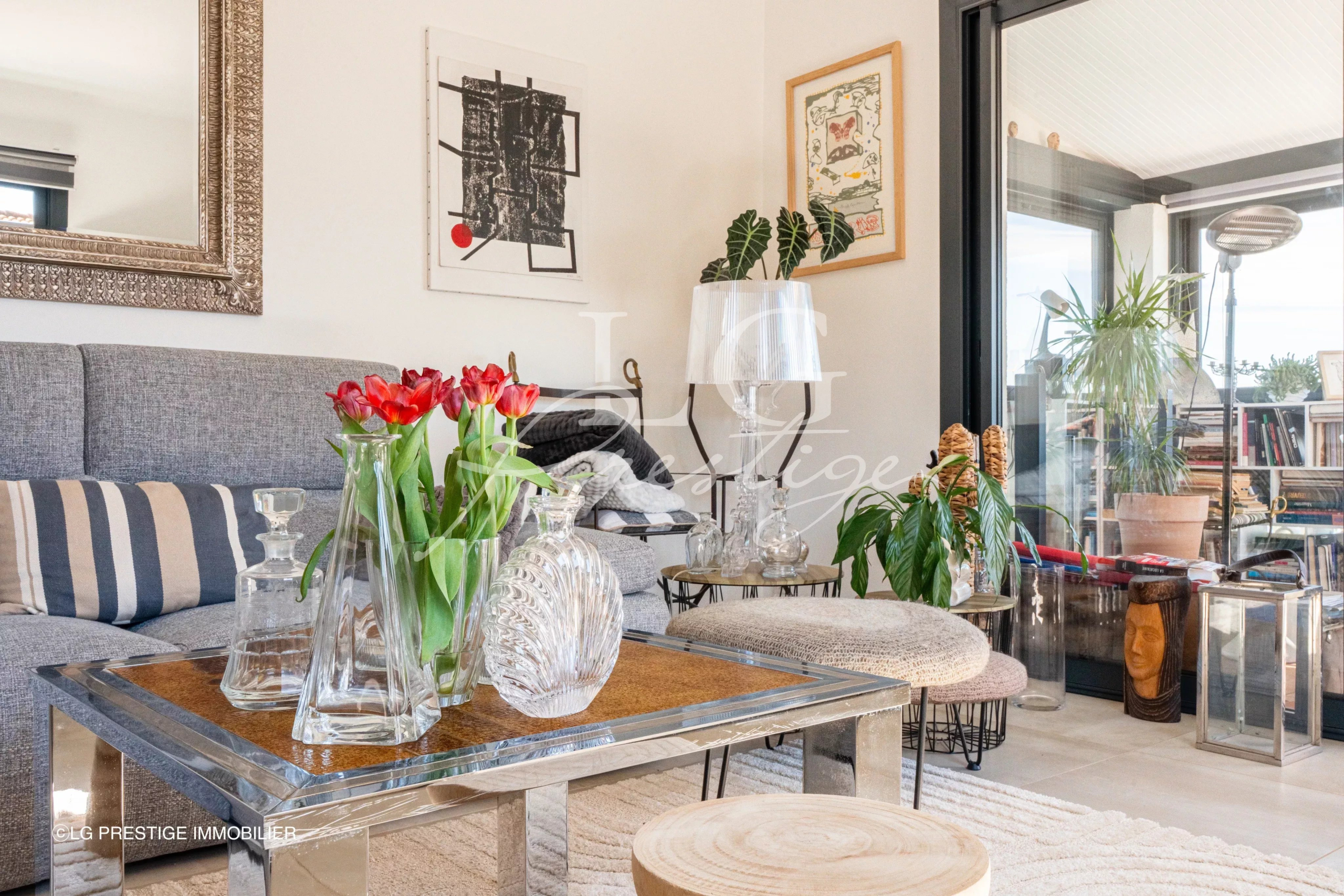 Belle maison de 175 m² entièrement rénovée, offrant une superbe vue dégagée sur la mer, les îles de Lérins, les collines et les montagnes, idéalement située à 5 minutes à pied des commerces, dans un quartier calme et prisé sur les hauteurs du centre-ville.
