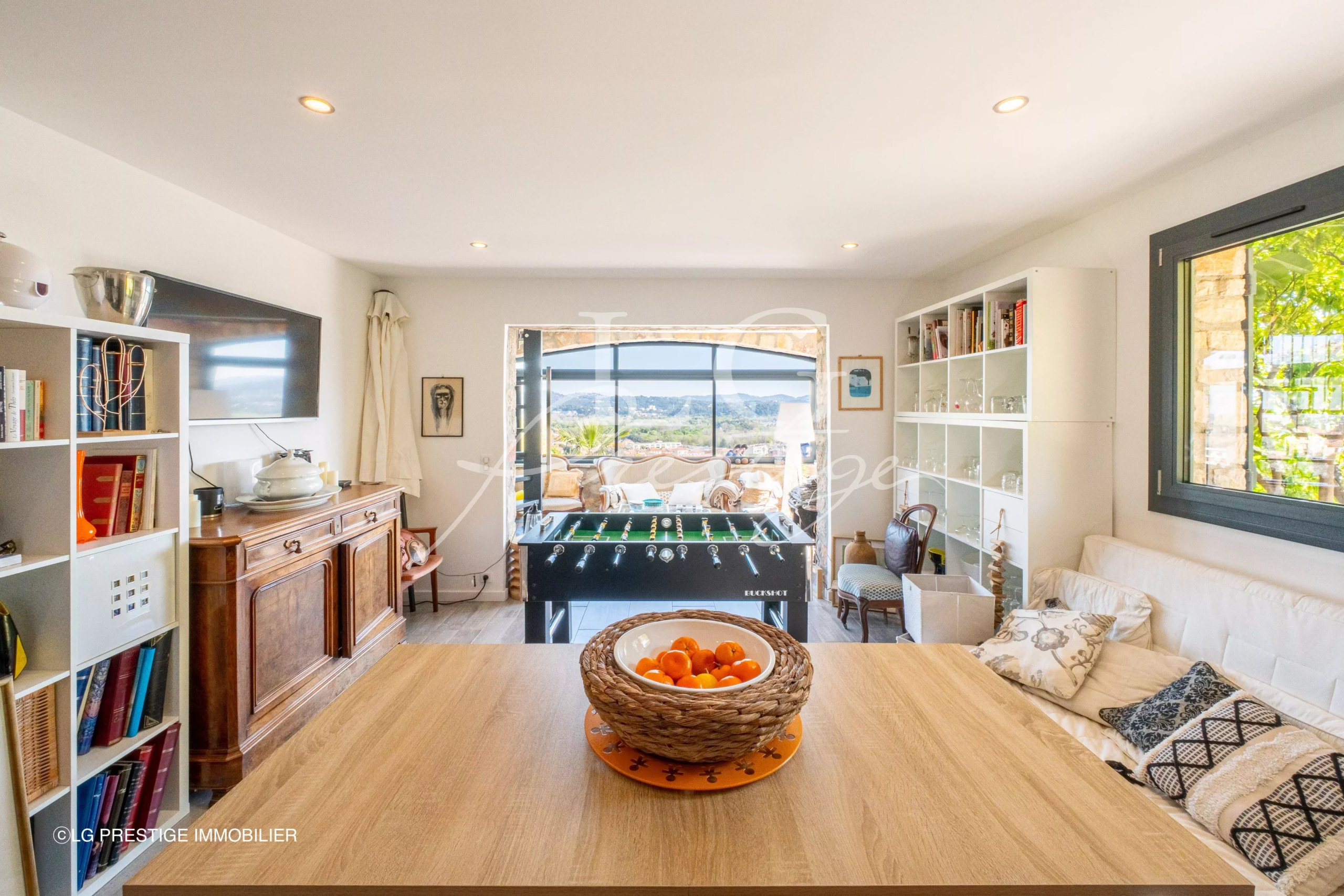 La propriété bénéficie de plusieurs espaces extérieurs agréables avec des jardins en restanque, une allée d’agrumes, un terrain de pétanque, ainsi qu’une piscine/jacuzzi chauffée avec plateforme rétractable, permettant d’en profiter toute l’année.