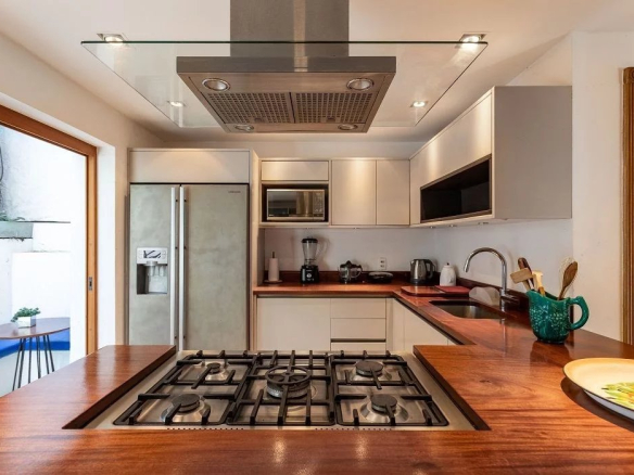 Construite dans les années 1970 par l’architecte Fernando Português, la propriété reflète le style moderniste brésilien et conserve l’esprit des maisons des années 1950 avec portes hautes, fenêtres en bois et usage de roches naturelles. Son architecture ouverte et ses grandes baies vitrées permettent une interaction harmonieuse avec la nature, offrant lumière naturelle et vues spectaculaires depuis tous les niveaux.
