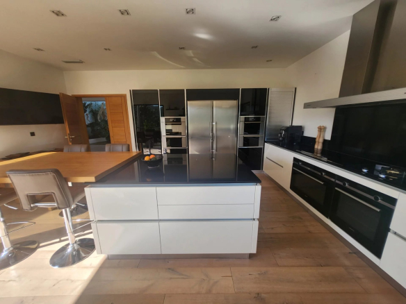 La cuisine italienne Veneta Cucine, à la fois élégante et fonctionnelle, incarne un mariage subtil entre modernité et classicisme. La maison offre trois superbes suites, chacune pensée dans un esprit de confort haut de gamme.