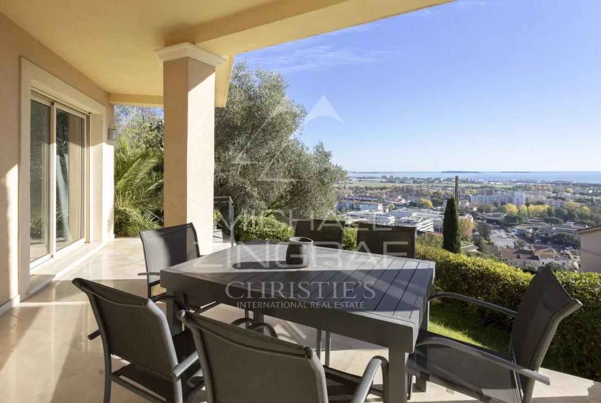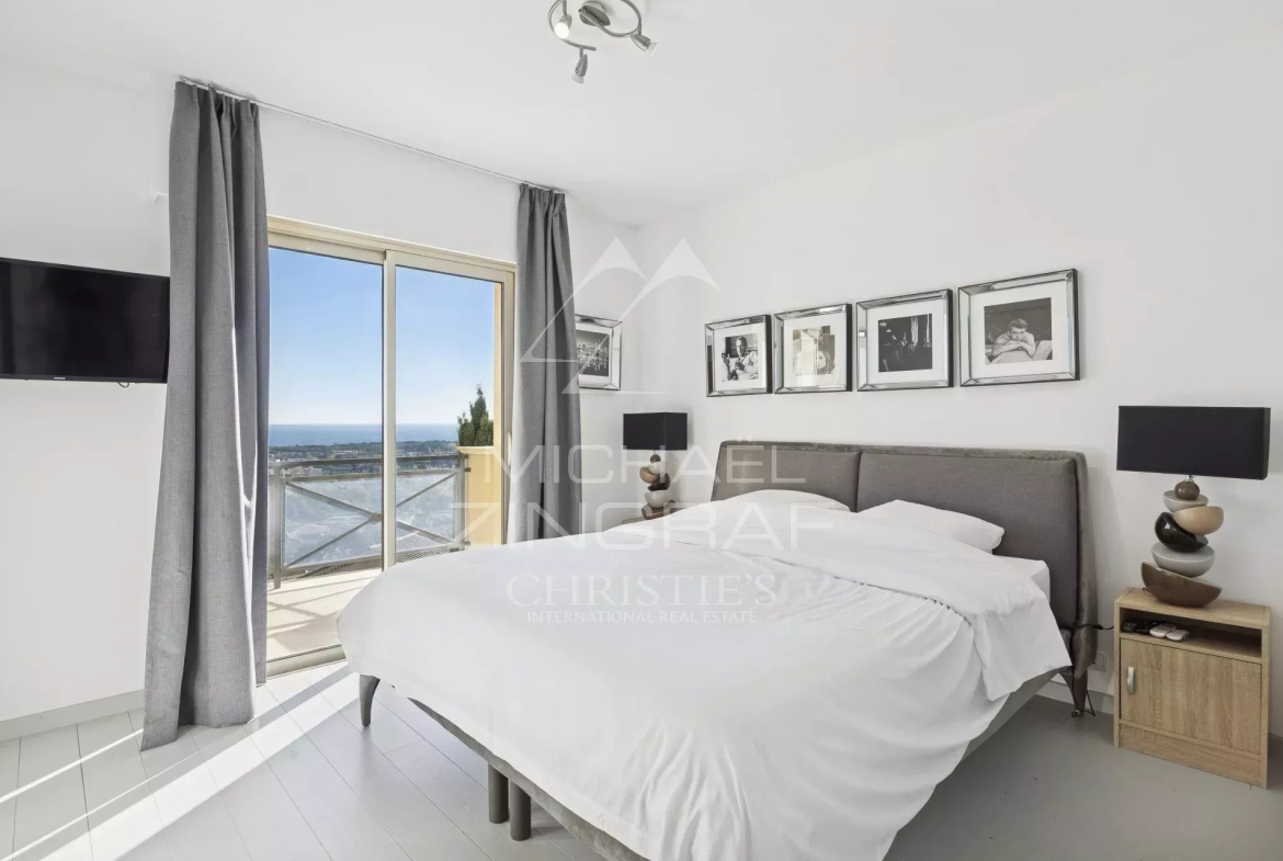 Située sur la colline des Termes, cette superbe villa contemporaine d’environ 118m2, offre une vue mer panoramique à couper le souffle. La maison exposée Sud-Est, se développe sur 2 niveaux et se compose d’une entrée, d’un large séjour lumineux avec cuisine équipée ouverte sur la salle à manger, de 3 chambres avec chacune sa salle de bain, une terrasse couverte ainsi qu’une vaste terrasse de toit avec jacuzzi. Un jardin en restanques d’environ 990 m² entoure la maison qui dispose de plusieurs places de stationnements. Proche des commodités et à 35 minutes de l’aéroport international de Nice.