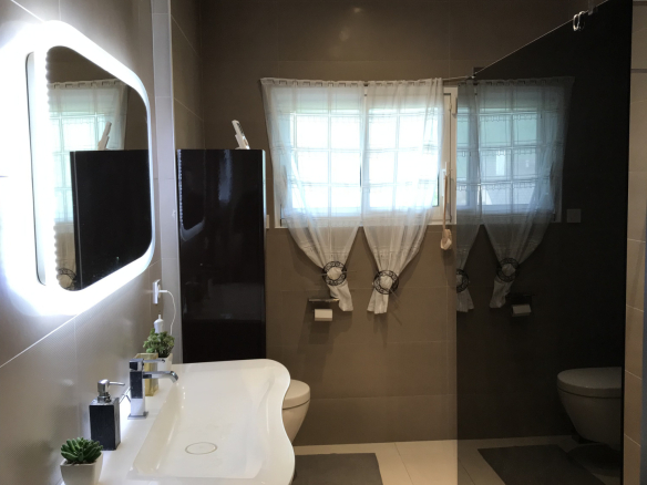 – Au RDC : un hall d’entrée avec rangements, un spacieux et lumineux séjour de 80m2 ouvert sur une cuisine américaine toute équipée donnant sur l’espace terrasse et piscine (exposition sud/ouest), une suite parentale (chambre, salle de douche privative et WC), 3 chambres dont deux grandes, salle de bains, WC indépendant.