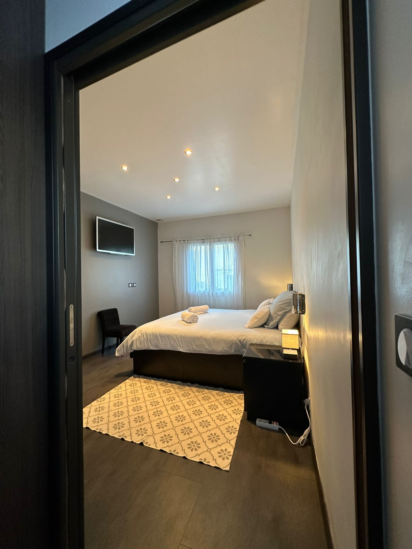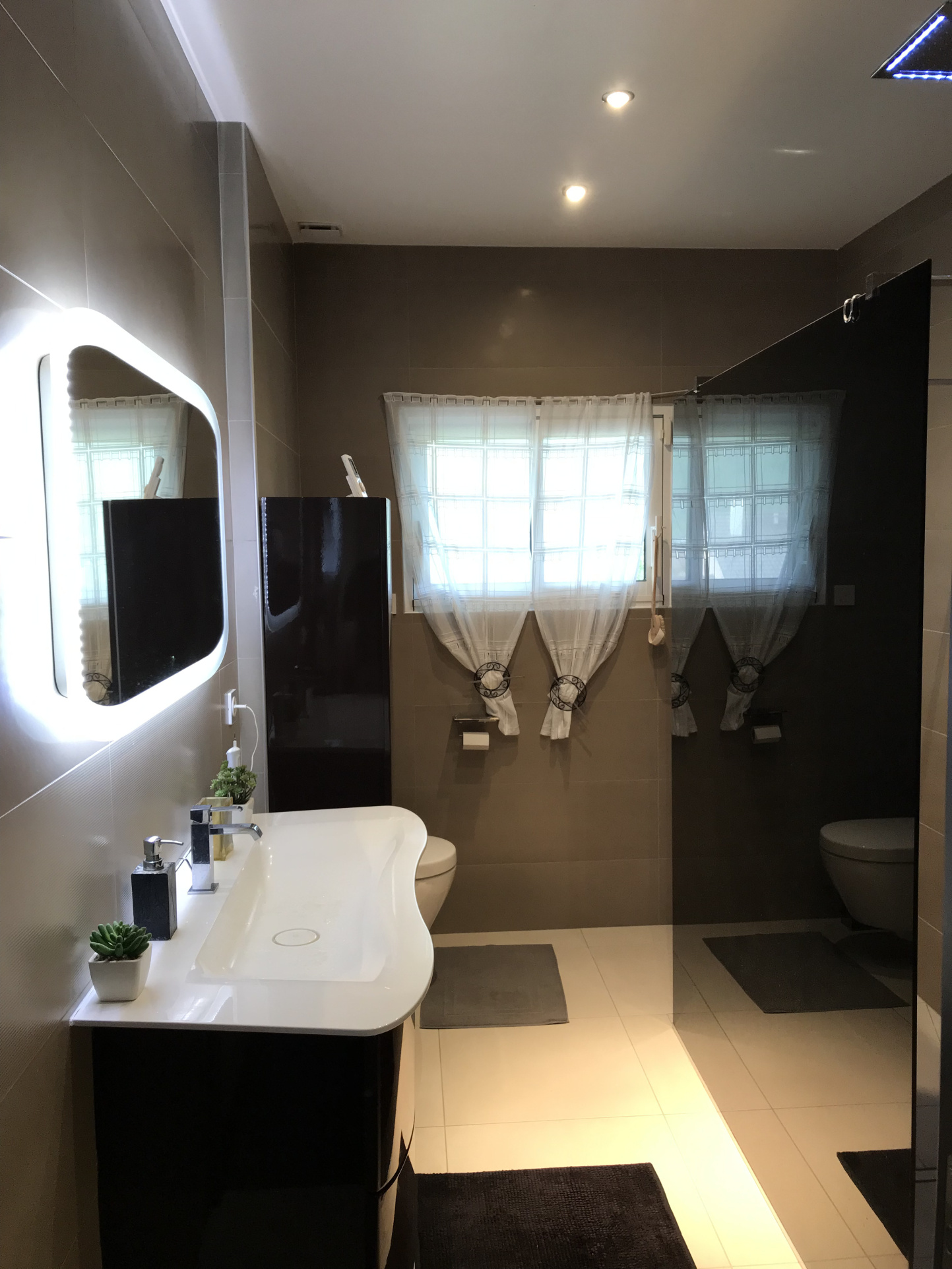 – Au Rez moins un : une chambre, une vaste salle de sport avec douche (40m2), un grand atelier (42.50m2), un garage pouvant accueillir plusieurs véhicules (61.50m2) avec porte sectionnelle motorisée, une buanderie, une chaufferie, un WC indépendant.