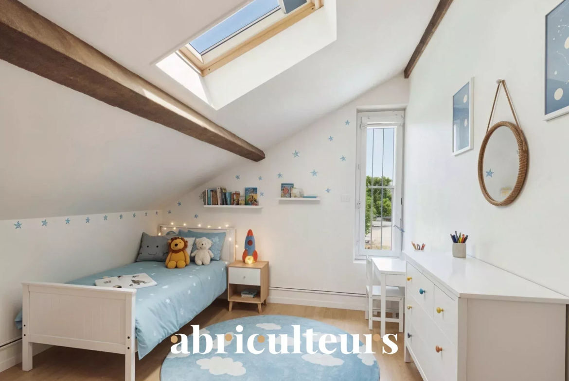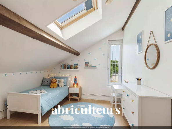 Sous les combles aménagés : une salle de jeux pour enfants et deux chambres supplémentaires, offrant de beaux espaces polyvalents.
