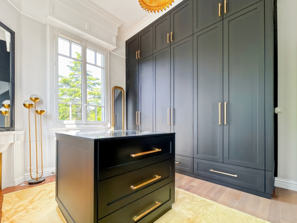 A l’étage,un escalier rénové mène à une suite parentale élégante et parfaitement agencée: vaste chambre, (18.12m2), dressing sur mesure , (14.36m2) salle de bain avec wc.(5.46m2)
