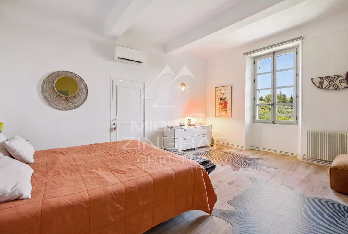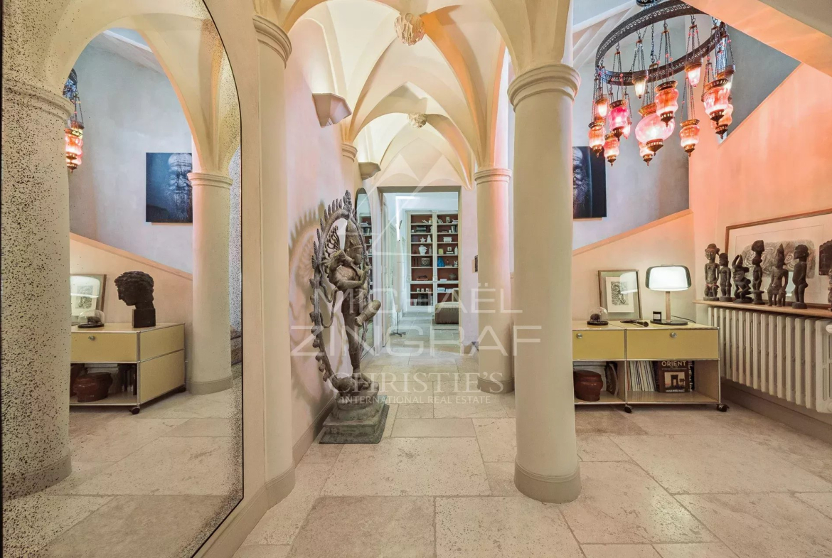 D’une surface de 325 m², cette propriété de caractère s’organise autour d’un escalier cathédrale impressionnant et propose six chambres aux matériaux de qualité : travertin, parquet massif et tomettes anciennes. Le rez-de-jardin est entièrement dédié au bien-être, avec un espace spa d’inspiration orientale comprenant un hammam et un sauna.