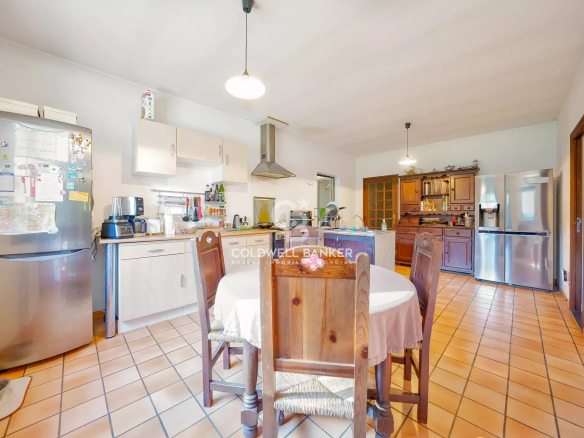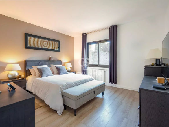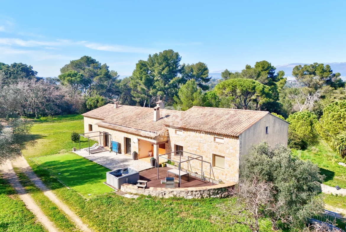 Entièrement de plain-pied, la maison se compose d’un vaste salon-séjour lumineux, d’une cuisine provençale authentique, une arrière cuisine, un appartement communicant mais pouvant être indépendant, trois chambres et trois salles de bains, un grand dressing.