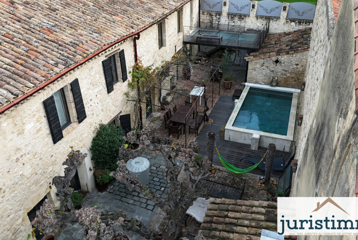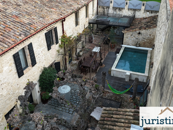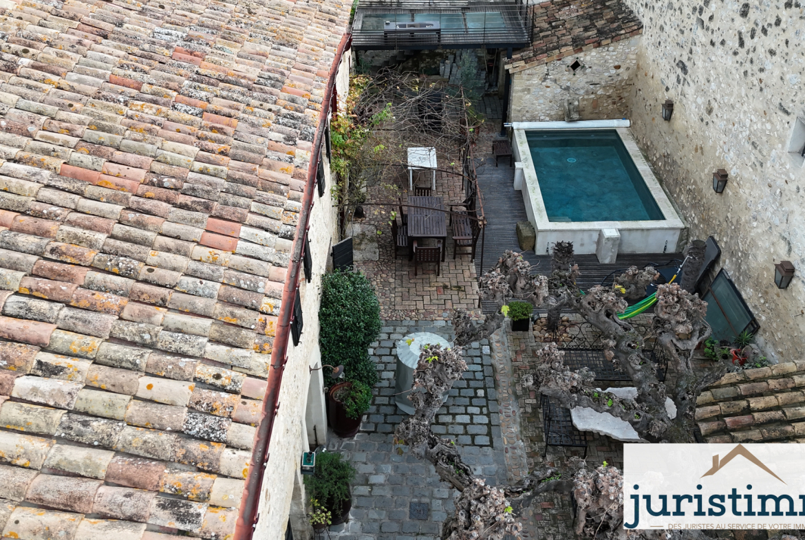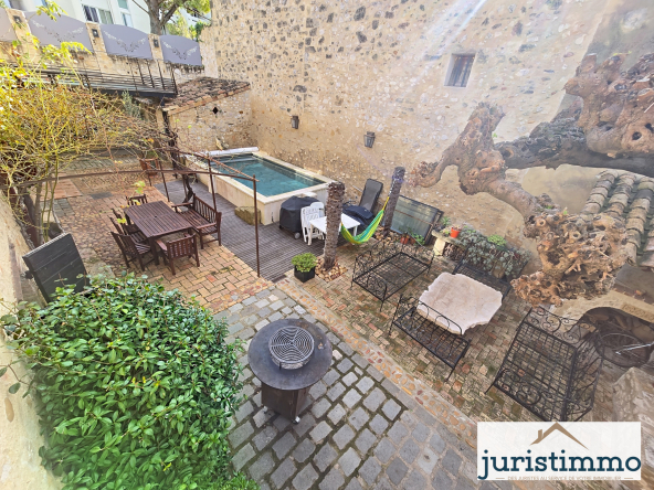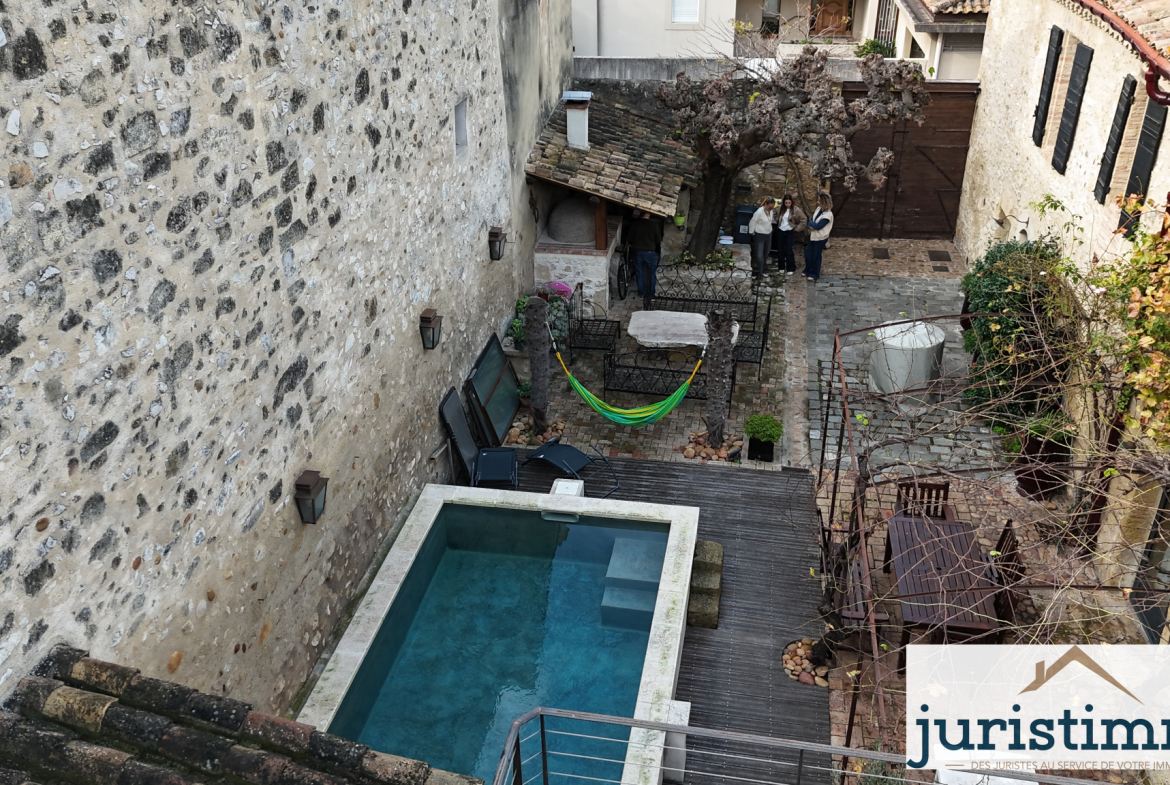À l’extérieur, 181 m2 d’espaces comprenant une terrasse plein Sud et une cour intérieure modulable (espace détente ou stationnement), comprenant une picsine sans vis-à-vis.