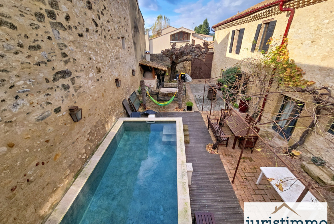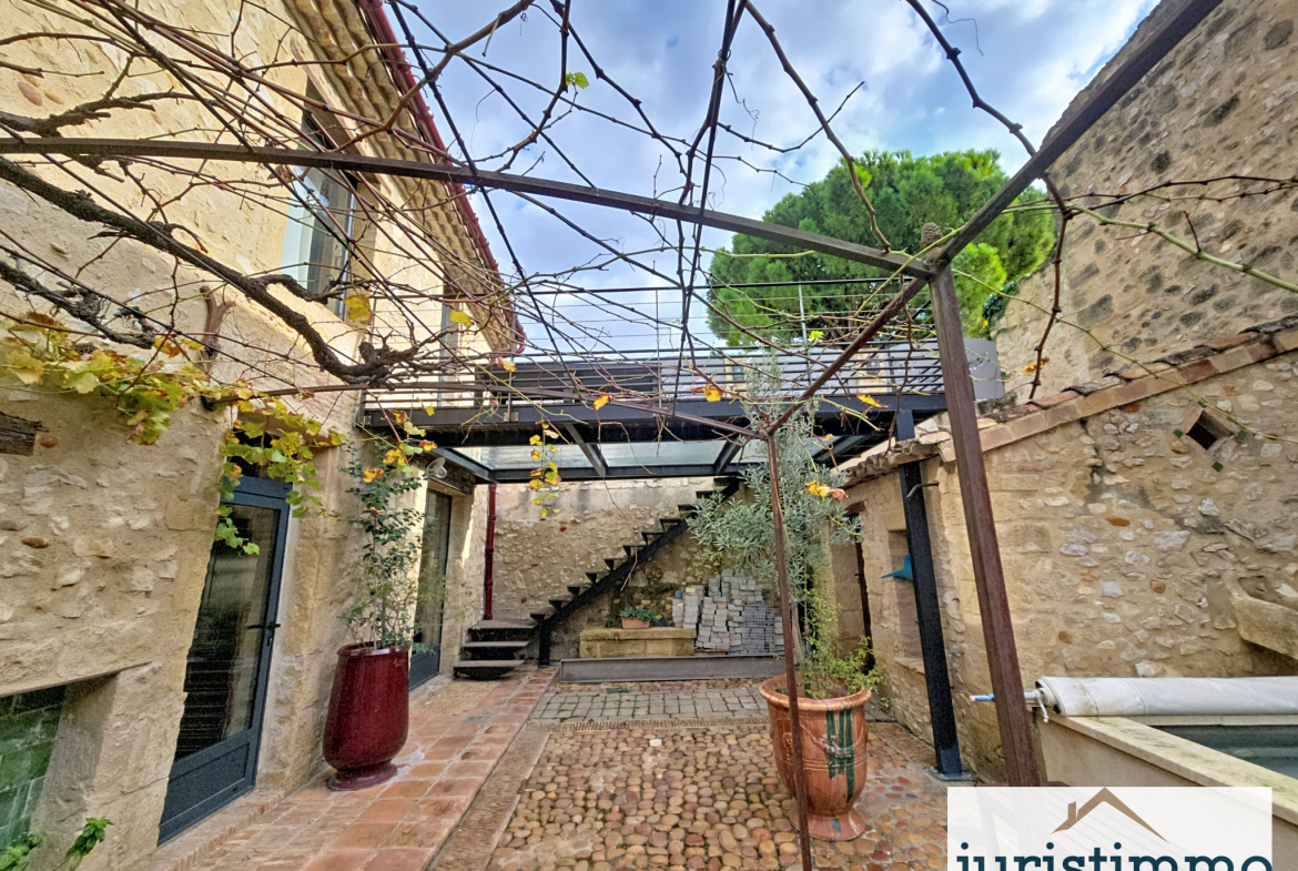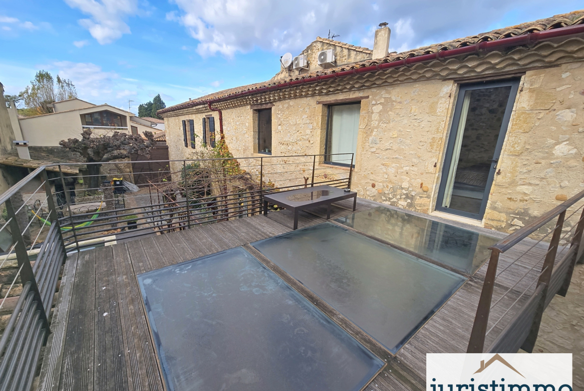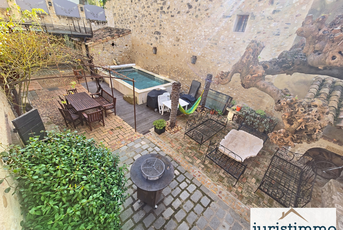 À l’extérieur, 181 m2 d’espaces comprenant une terrasse plein Sud et une cour intérieure modulable (espace détente ou stationnement), comprenant une picsine sans vis-à-vis.