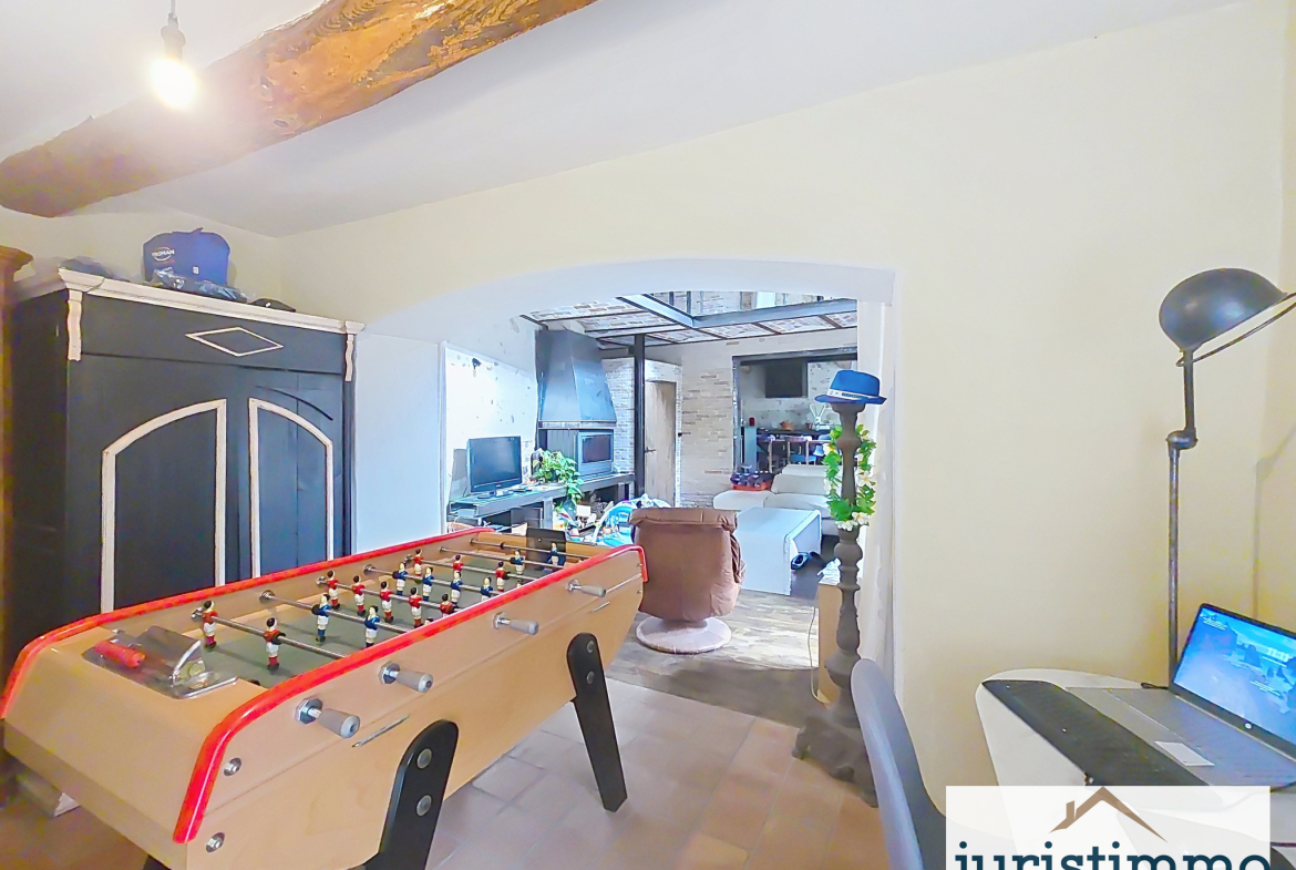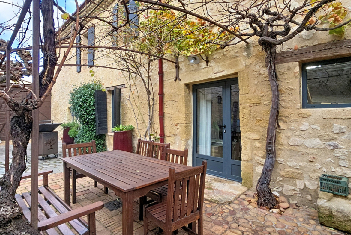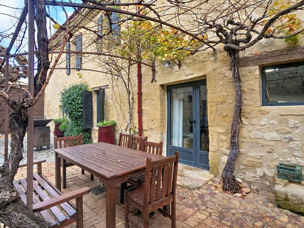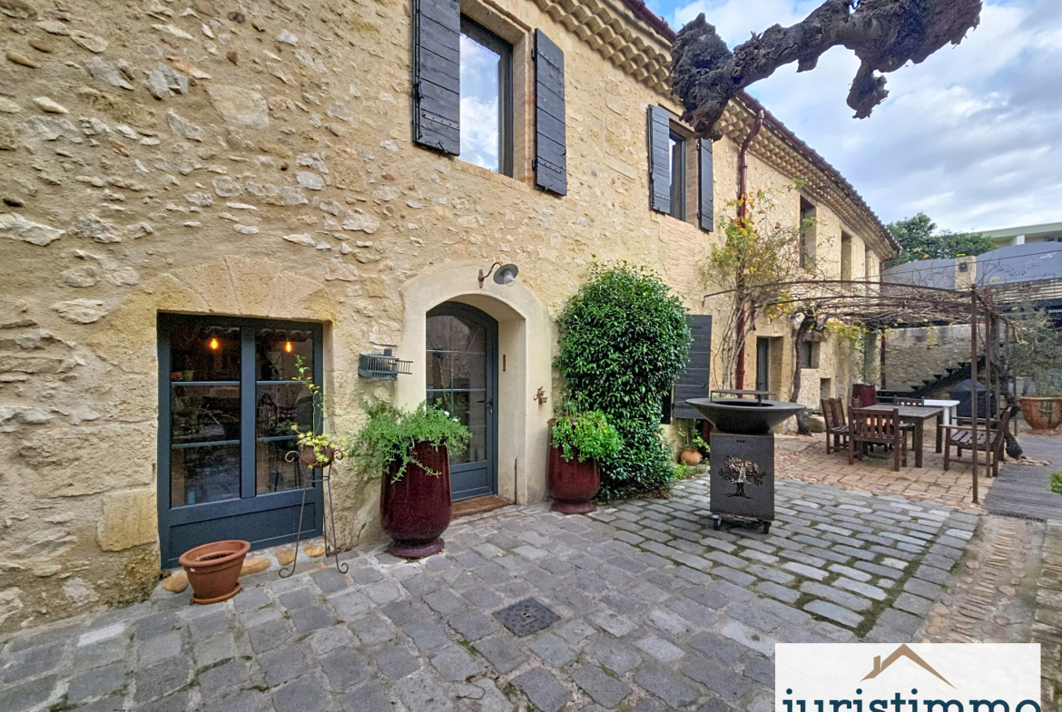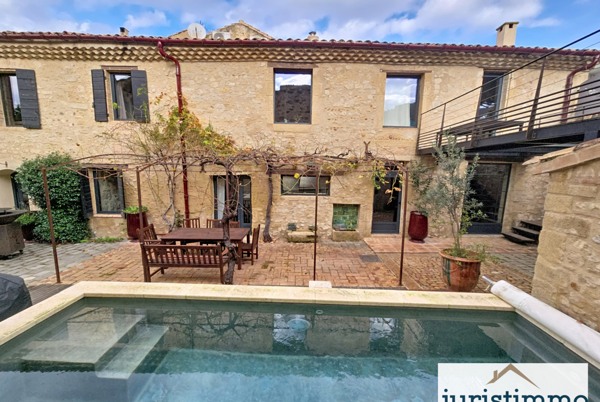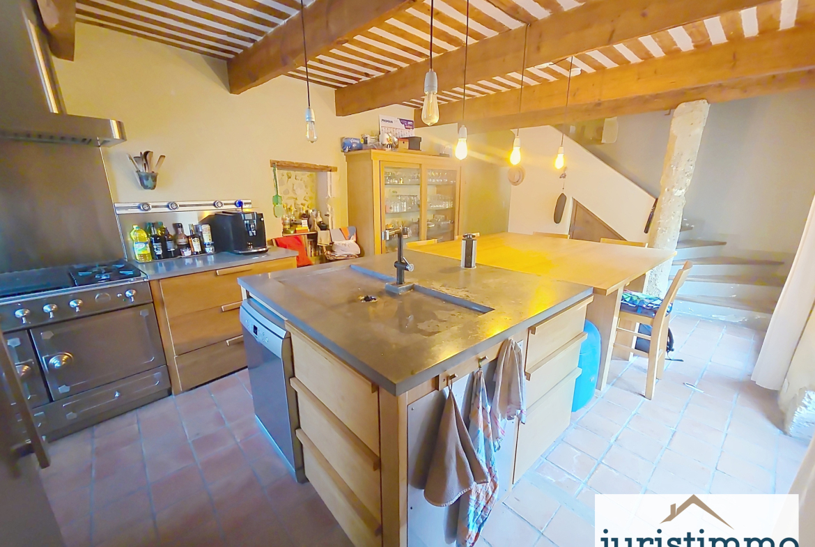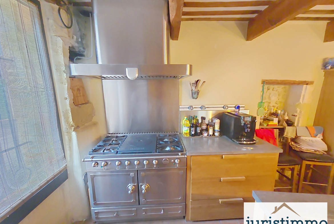 Superbe maison de caractère entièrement rénovée dans un style mêlant authenticité et esprit loft : pierres apparentes, poutres, métal et bois massif.