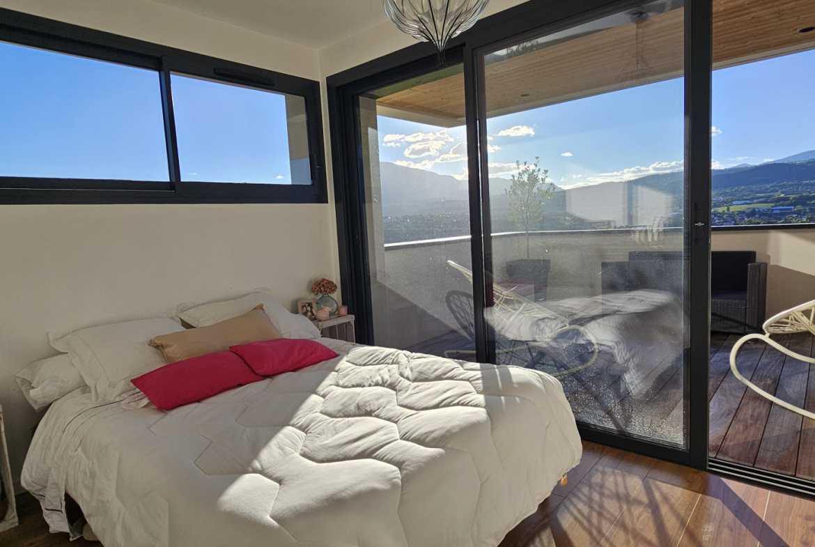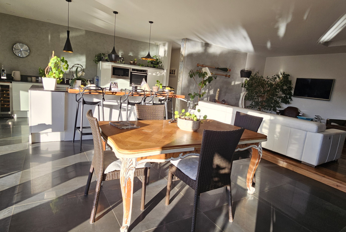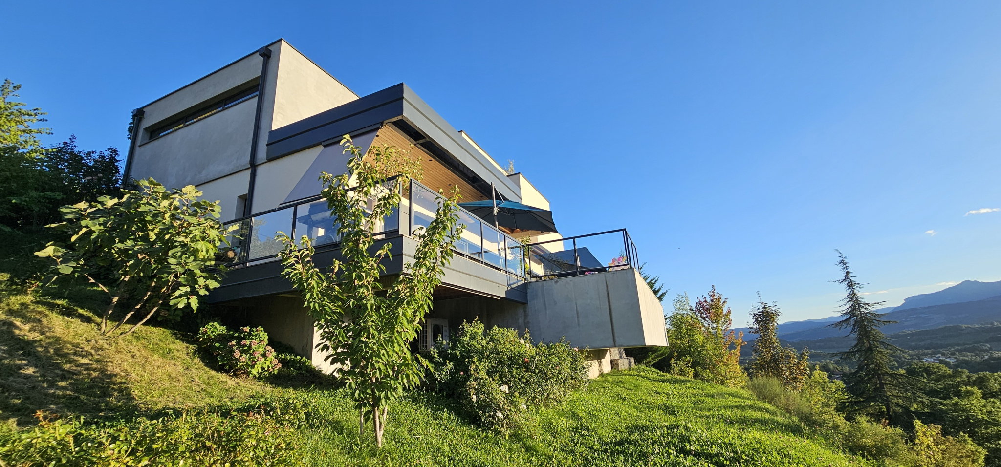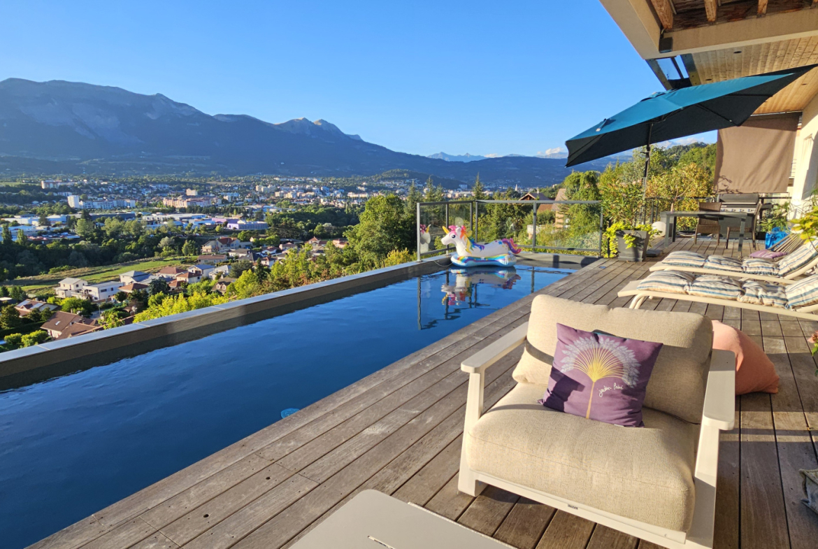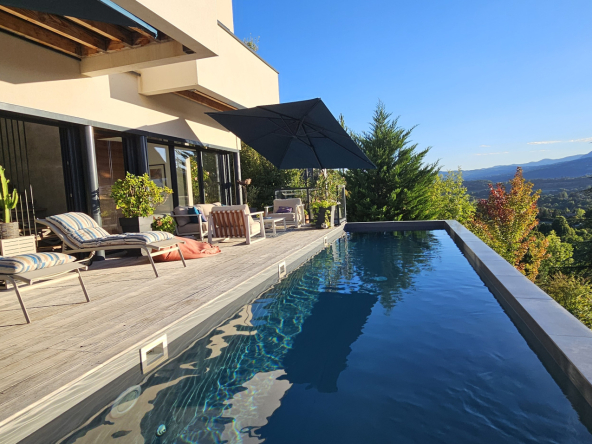 À vendre, sur les hauteurs de Gap, superbe maison contemporaine d’architecte de 168 m2 implantée sur un terrain de 1 508 m2, offrant une vue imprenable sur les montagnes du bassin gapençais. Conçue en béton aux lignes audacieuses, elle séduit par son caractère unique et ses prestations haut de gamme, notamment son exceptionnel bassin de nage suspendu qui confère à l’ensemble une esthétique rare et spectaculaire.