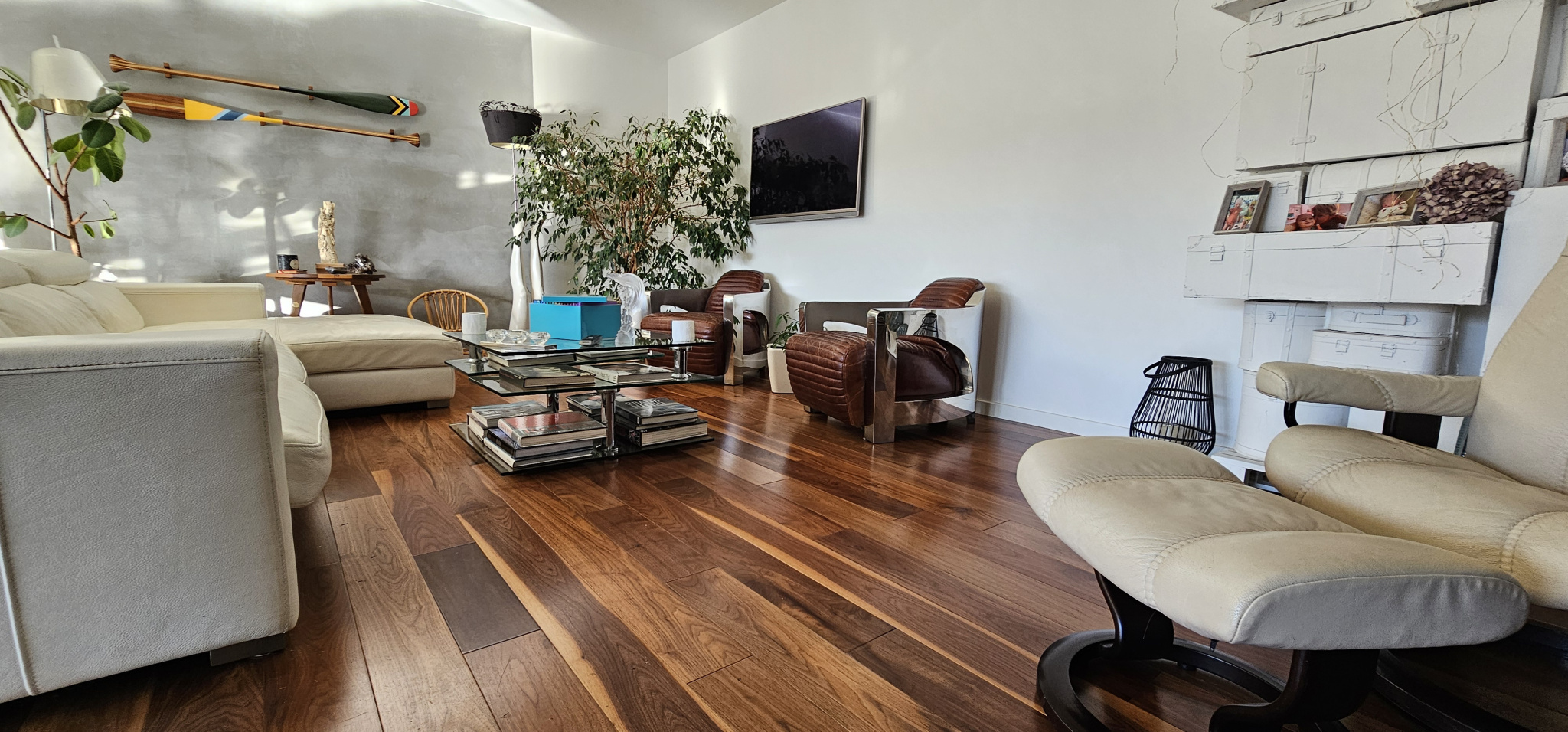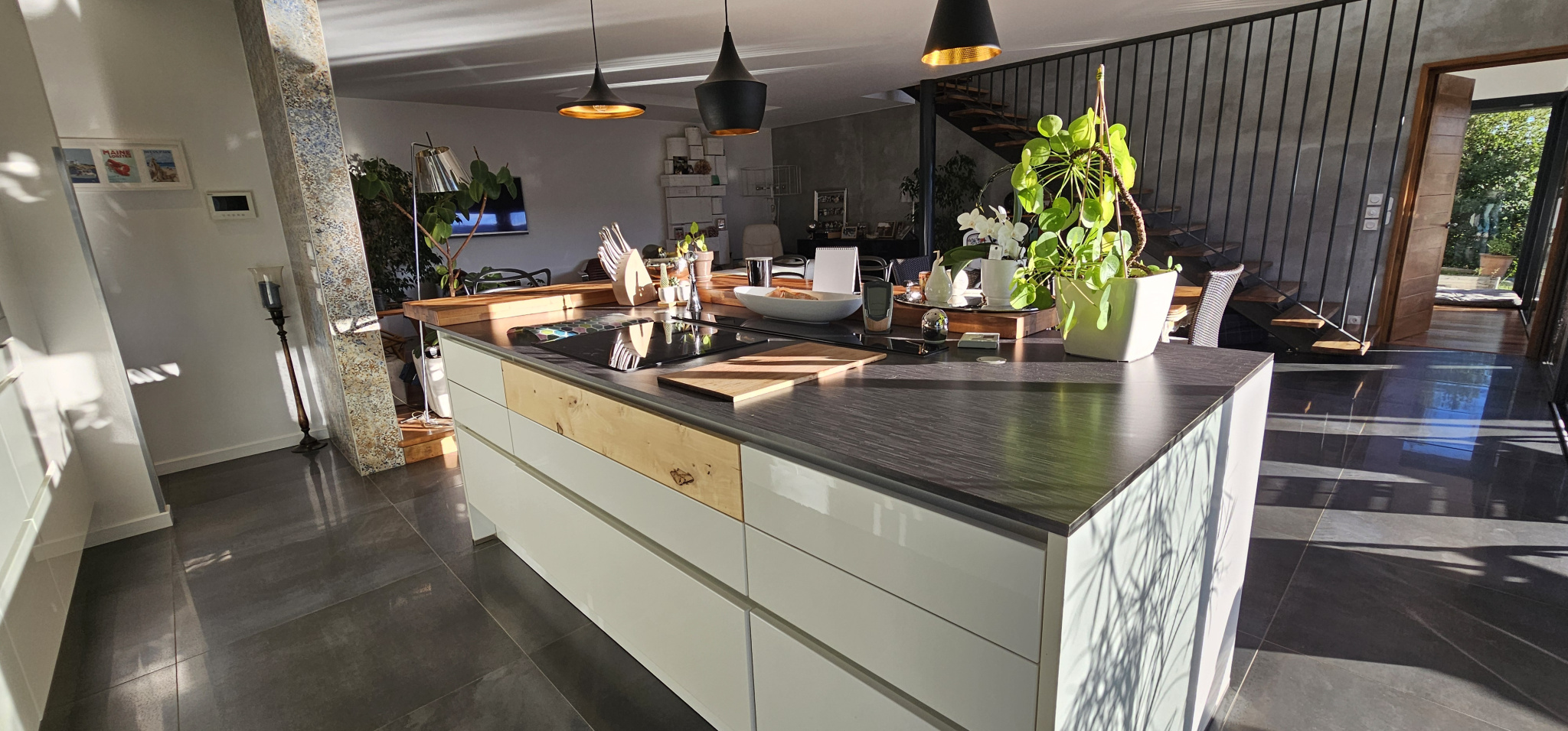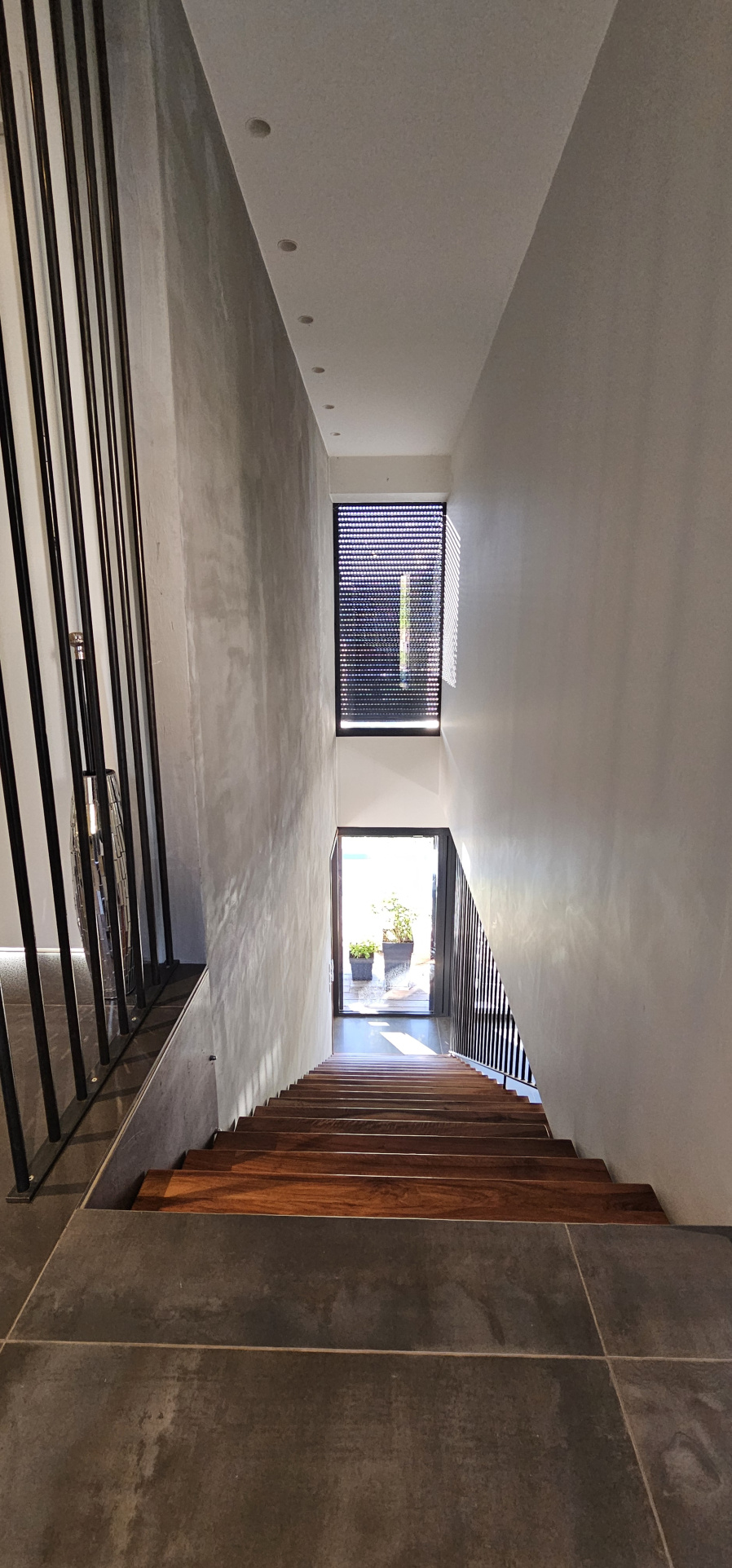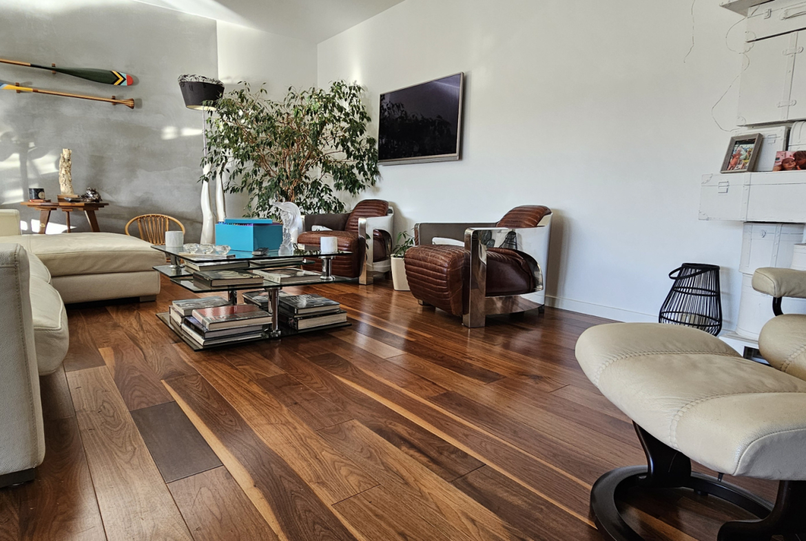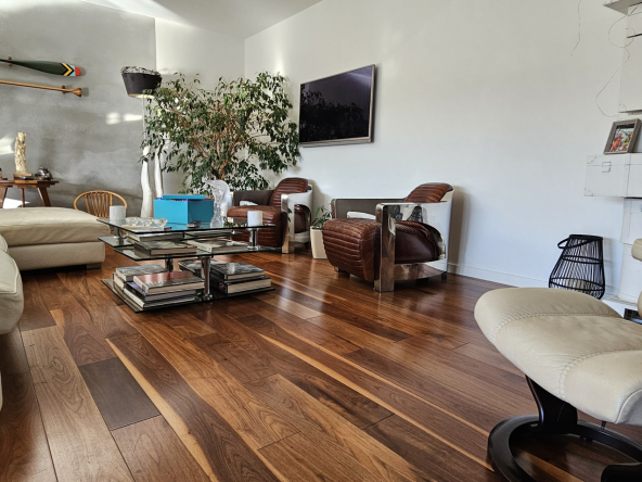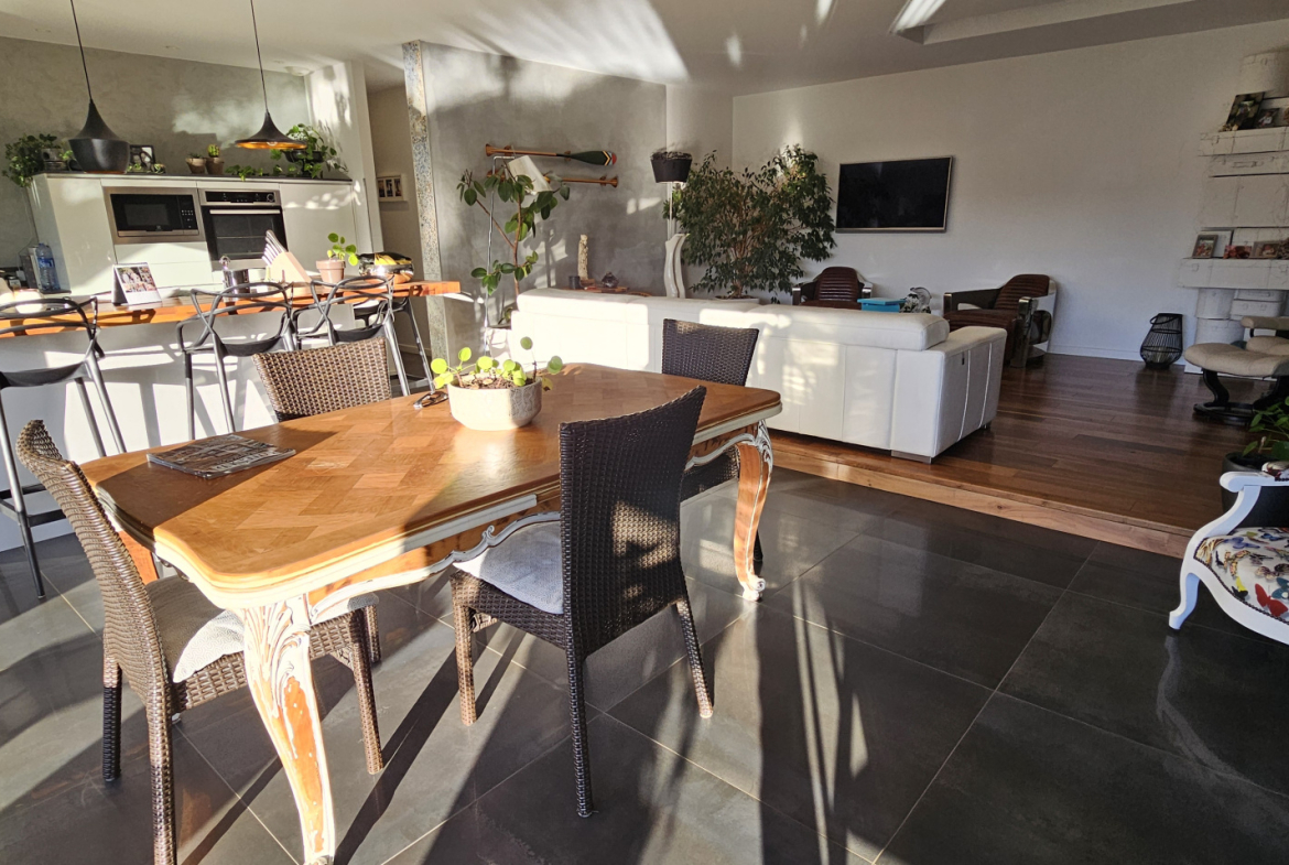 L’entrée se fait par le niveau principal comprend deux chambres avec terrasses privatives, une salle de bain et un WC. Un élégant escalier en fer forgé et noyer mène à l’étage inférieur où se trouvent une vaste pièce de vie baignée de lumière grâce à une façade entièrement vitrée, une cuisine moderne avec cellier, une buanderie et un WC. La suite parentale, située sur ce même niveau, bénéficie de sa propre salle de bain, d’un WC et d’un grand dressing. Toutes les pièces s’ouvrent sur une grande terrasse orientée sud-ouest, prolongée par une piscine couloir de nage équipée d’un système de traitement BIO UV à oxygène actif, garantissant une eau pure et douce.