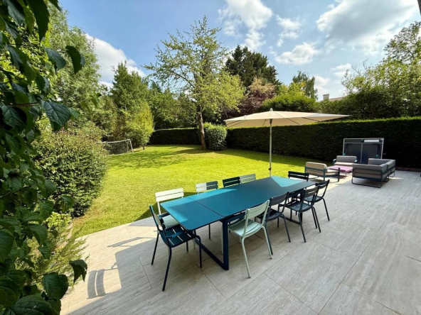 À l’extérieur, un magnifique jardin privatif de 1 100 m², paysager et sans aucun vis-à-vis, offre un cadre idéal pour une grande famille et des moments de convivialité.