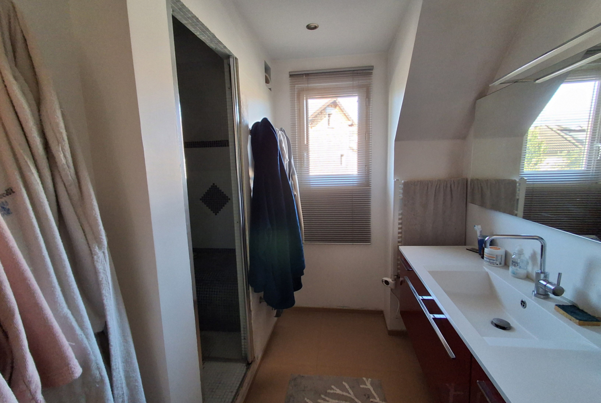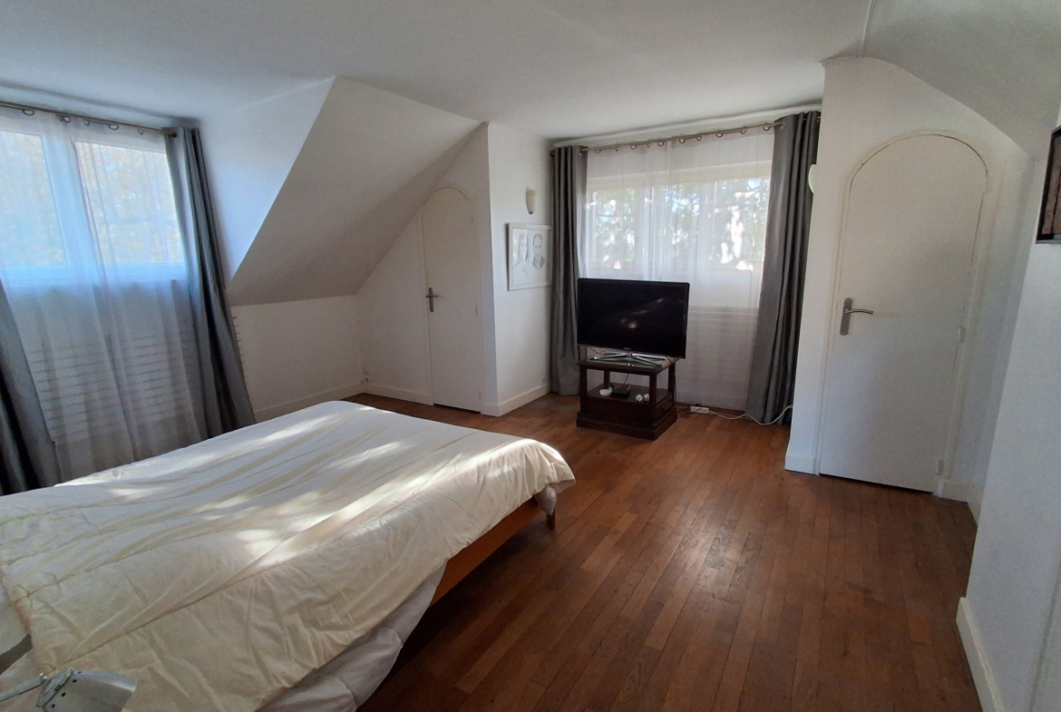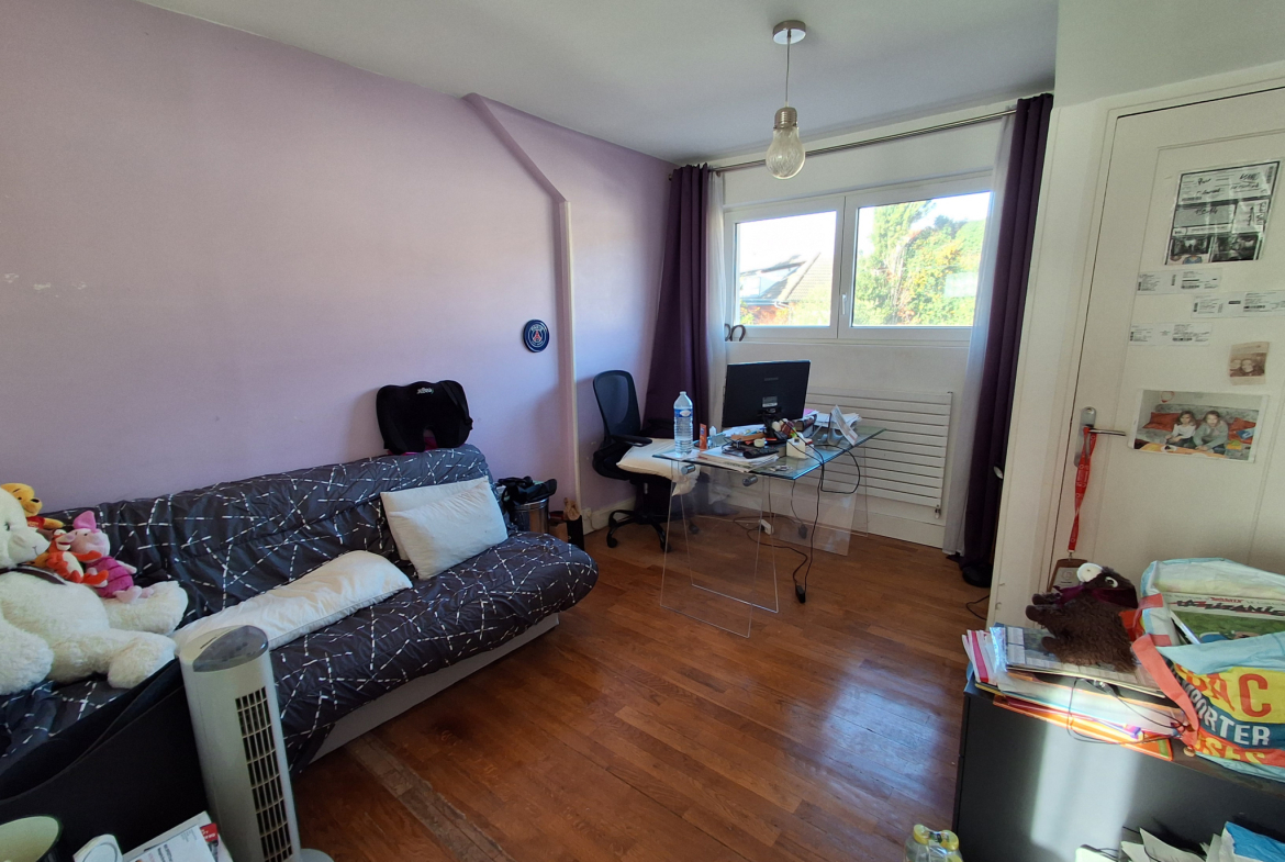 La maison dispose également d’un grand balcon, ainsi que d’une terrasse et d’un jardin exposés plein Sud, offrant une belle vue dégagée sur le parc du Morbras.