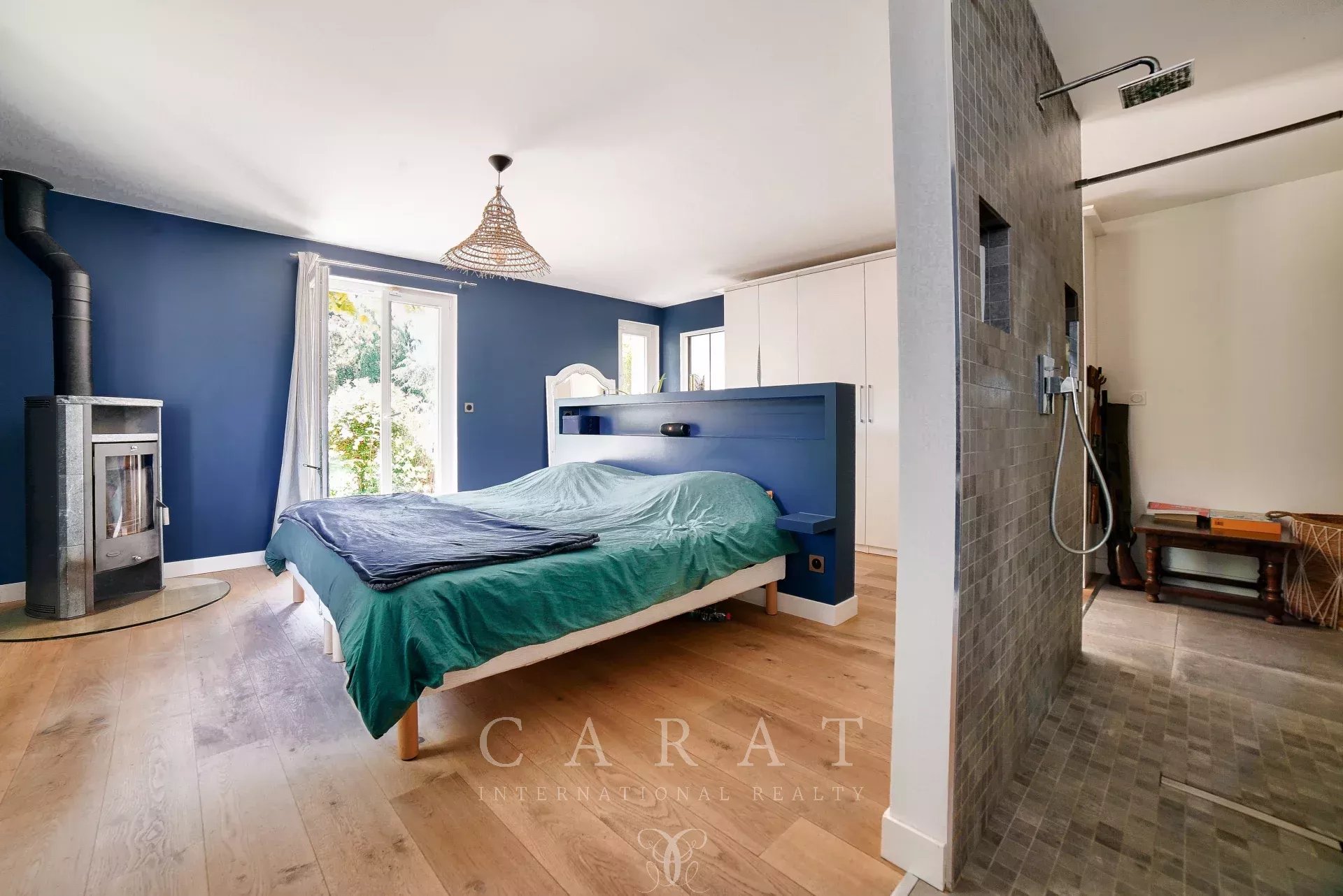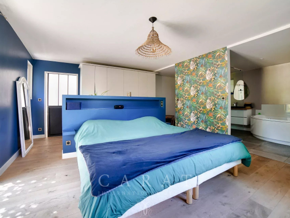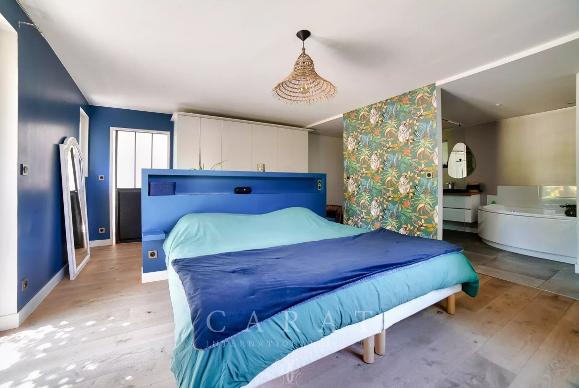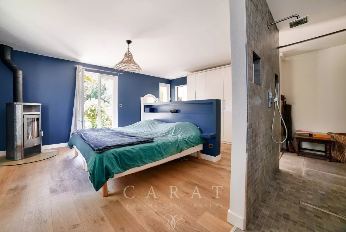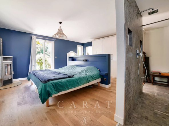 5 chambres : Incluant une suite parentale de plain-pied avec dressing, salle de bains et toilettes. Deux chambres avec salles d’eau privatives, une chambre avec salle d’eau indépendante, un grand bureau (cinquième chambre).
