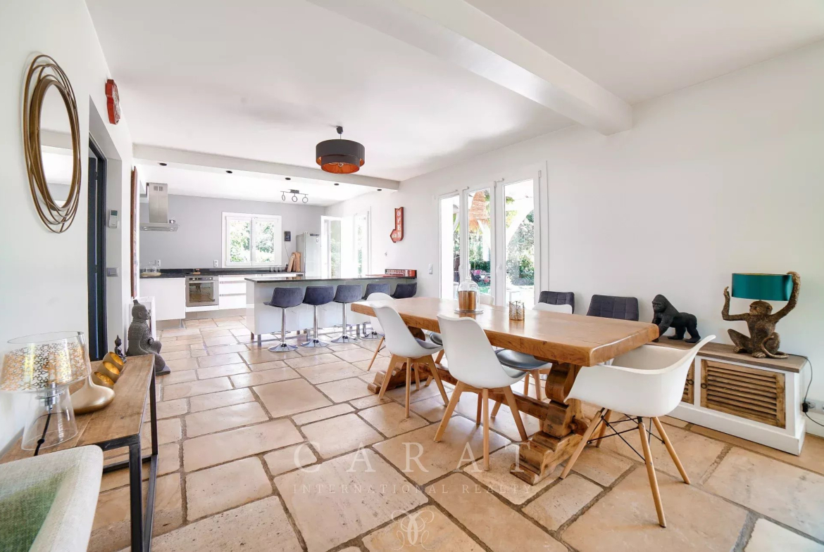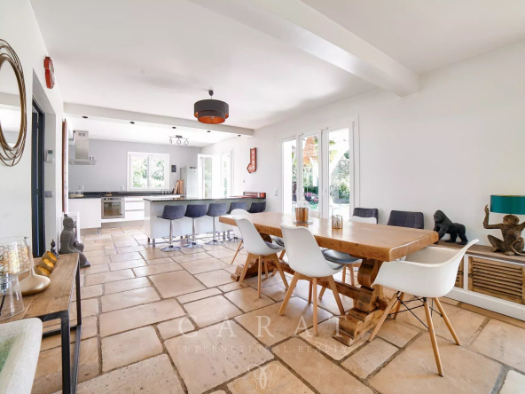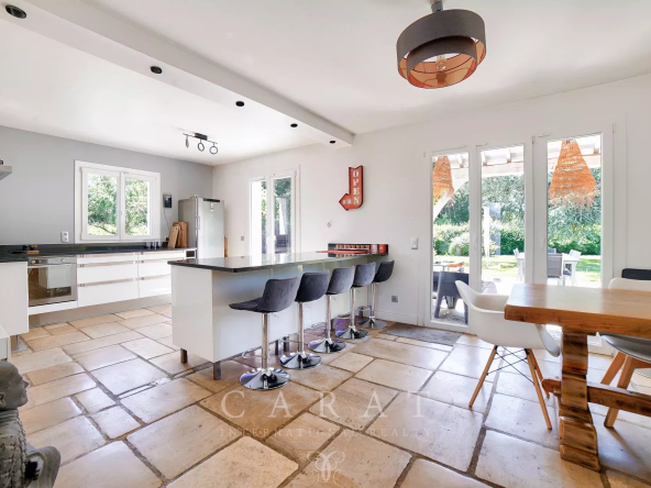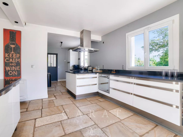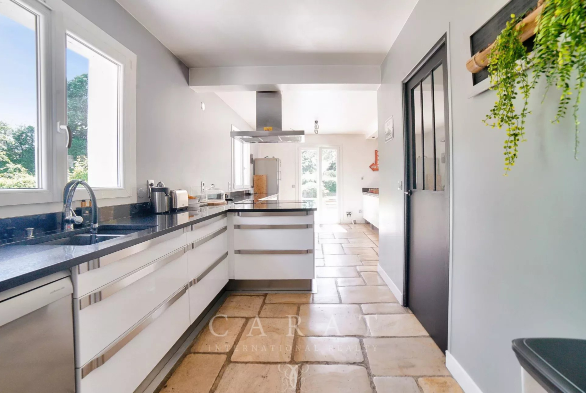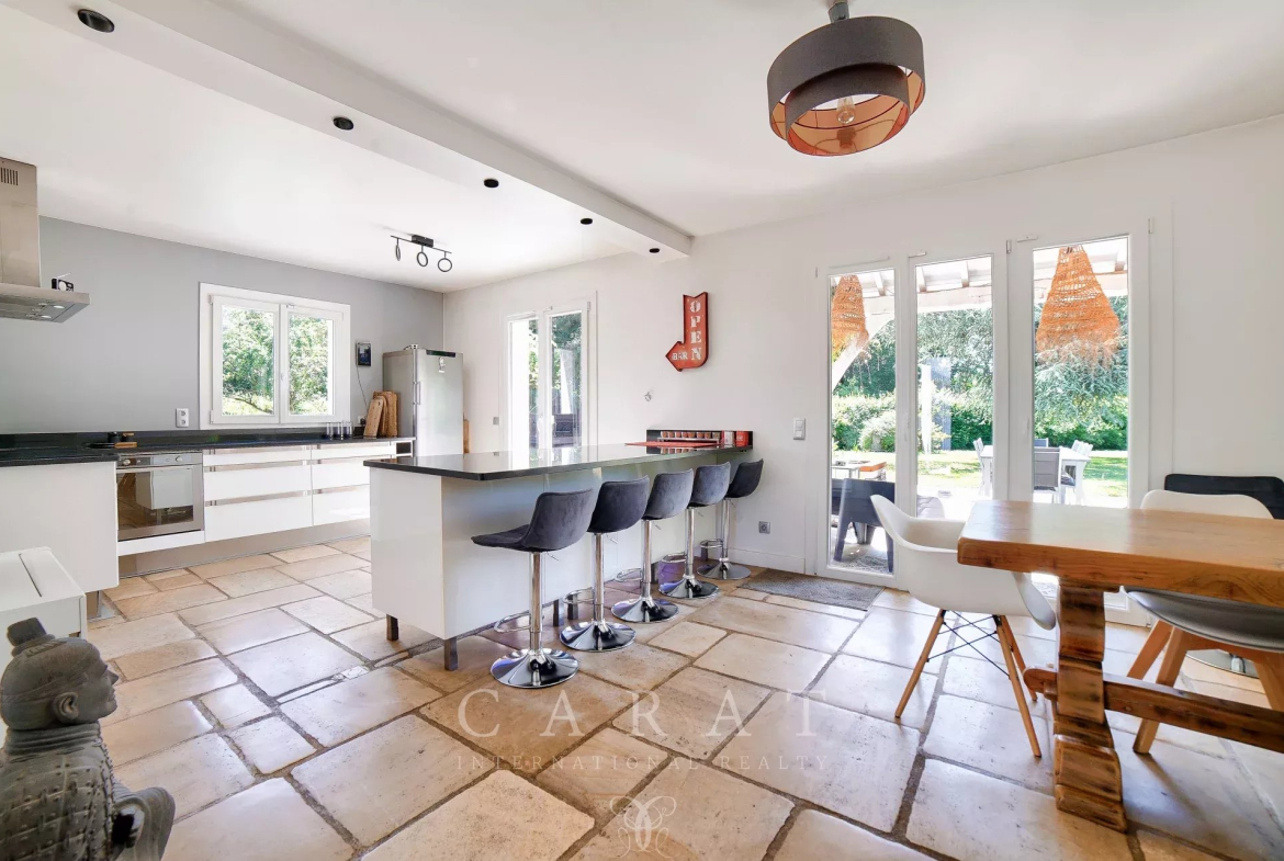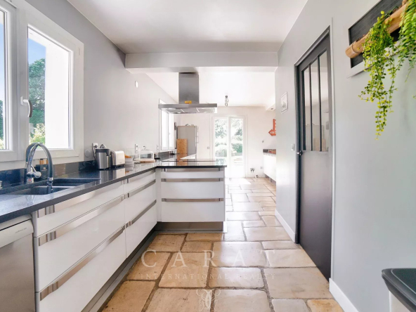 Cuisine ouverte équipée : Fonctionnelle et conviviale, accompagnée d’une arrière-cuisine.