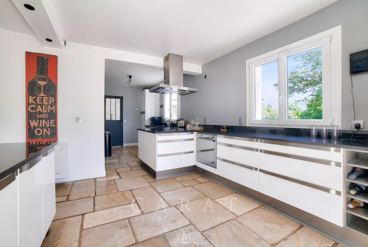 St Rémy l’Honoré – Découvrez cette maison familiale d’exception, idéalement située à seulement 40 minutes de la Porte de Saint-Cloud et à 10 minutes de la N12 facilitant les déplacements vers PARIS. Gare à proximité direction Montparnasse. Nichée dans un village paisible et verdoyant avec école et commerces, cette propriété de 228 m² habitables, entièrement rénovée en 2019, offre un cadre de vie privilégié sur un terrain arboré de 3 300 m² sans vis-à-vis et parfaitement au calme.