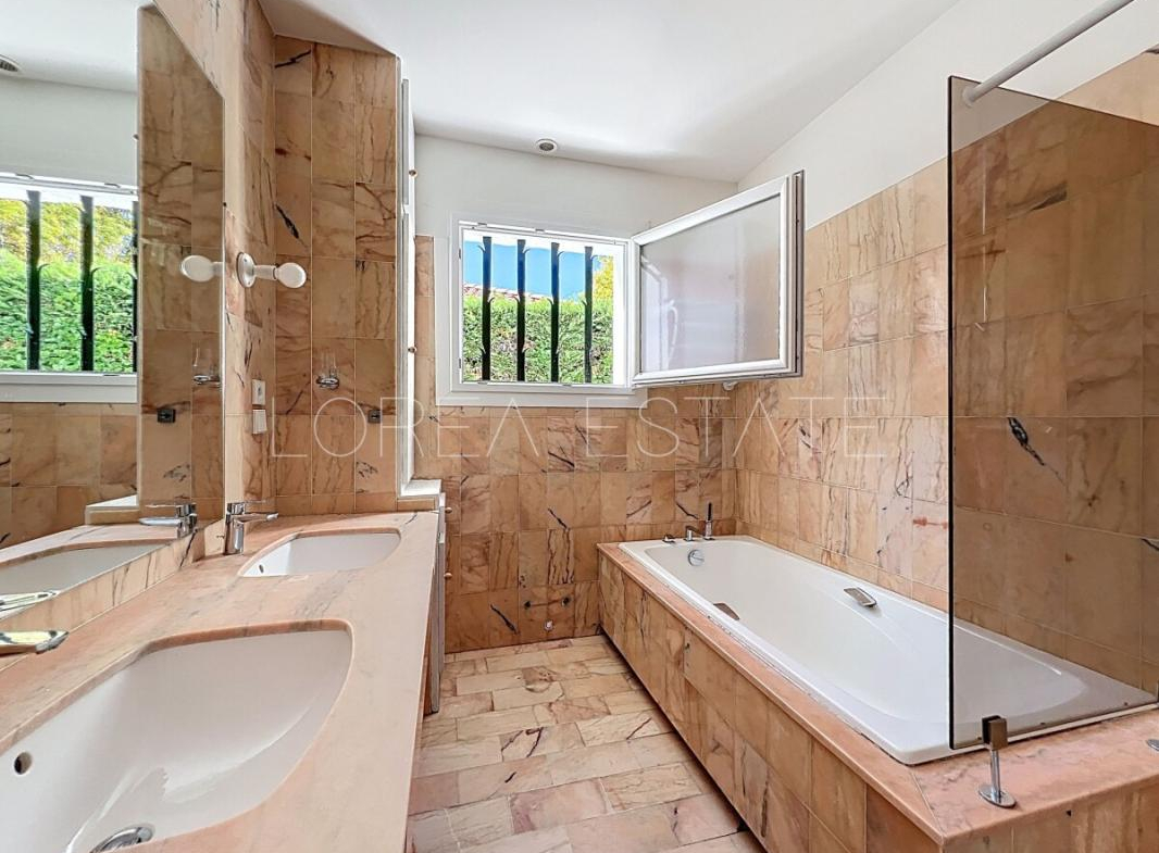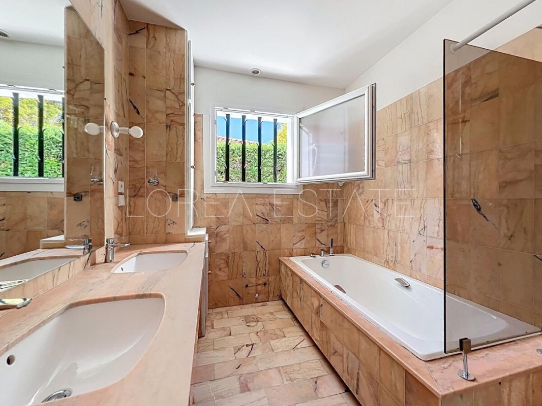 La partie rez-de-jardin comprend également une chambre, une salle de bain, ainsi que des toilettes séparées.