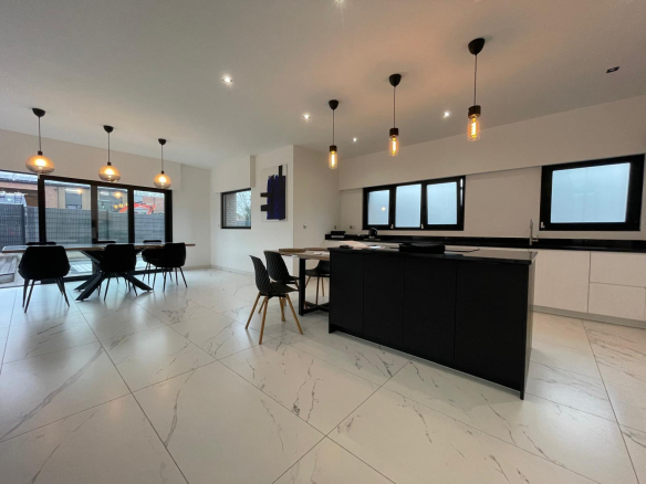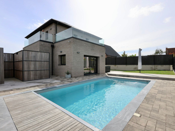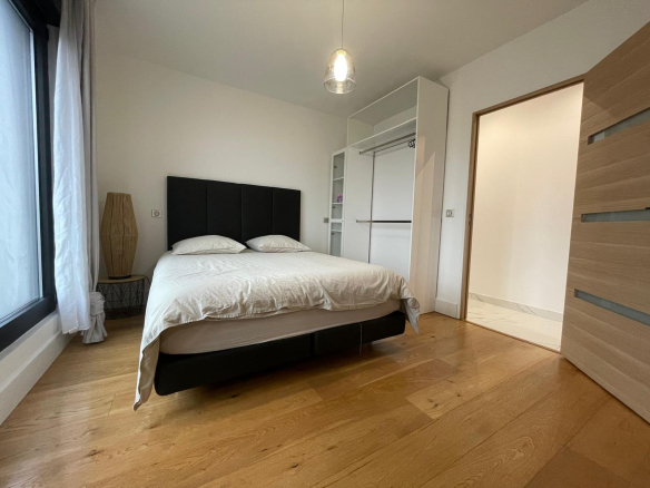 Une belle entrée vous mène à un spacieux séjour aménagé avec goût et modernisme – que les immenses baies vitrées baignent de lumière – donnant sur la piscine et le jacuzzi aux abords d’une terrasse ensoleillée sud / sud-ouest. Cuisine américaine entièrement équipée de matériaux hauts de gamme, une suite parentale aux volumes généreux (dressing, salle de douches avec WC indépendant.