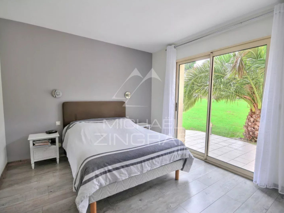 Le jardin clos d’une surface de 3233 m2 est soigneusement entretenu, aménagé, fleuri et arboré et en position légèrement dominante. Il bénéficie d’une grande terrasse exposée Sud.