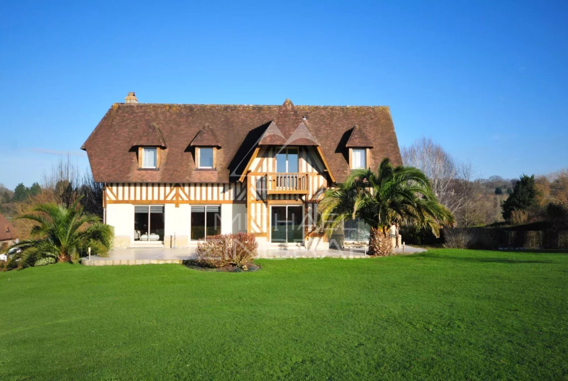 En Normandie, à seulement quelques minutes d’Houlgate, dans un domaine calme et sécurisé, agréable et lumineuse maison de style normand avec terrasse parfaitement située au milieu de la verdure.