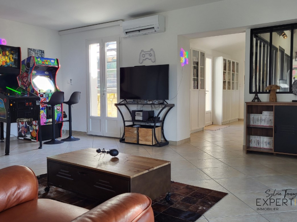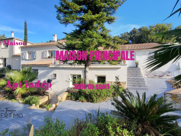 Idéale pour une grande famille avec enfant, projet avec rapprochement familial, 2 familles, profession libérale recevant des clients ou pour de la location saisonnière. Elle offre deux maisons indépendantes et reliées entre elles, deux piscines, un appartement indépendant et une salle de sport.