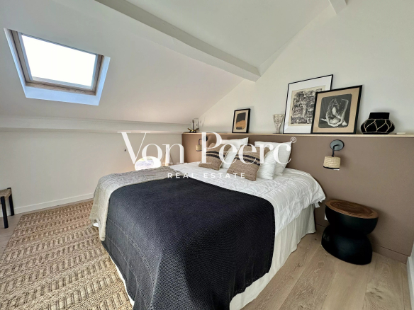 A l’étage, un grand salon avec un parquet chêne, une lingerie et trois chambres confortables et climatisées ont été conçues en suite. Une quatrième chambre a été aménagée en chambre d’enfant avec 2 lits simples mais pourrait devenir un bureau ou un dressing.
