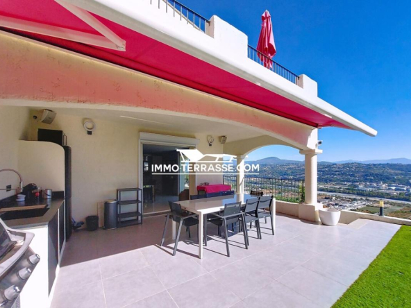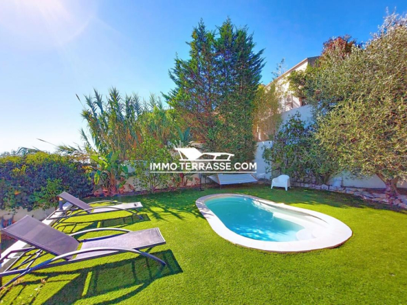 A vendre en co-exclusivité, charmante villa sur les hauteurs de Saint-Laurent-du-Var avec piscine, superbe vue sur les collines, les montagnes et la mer.