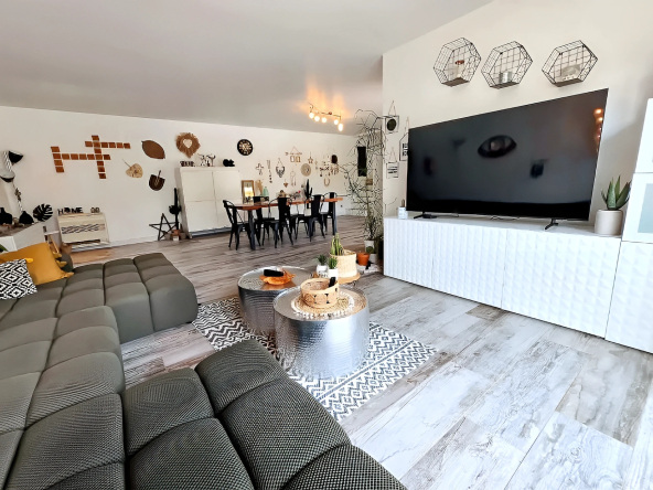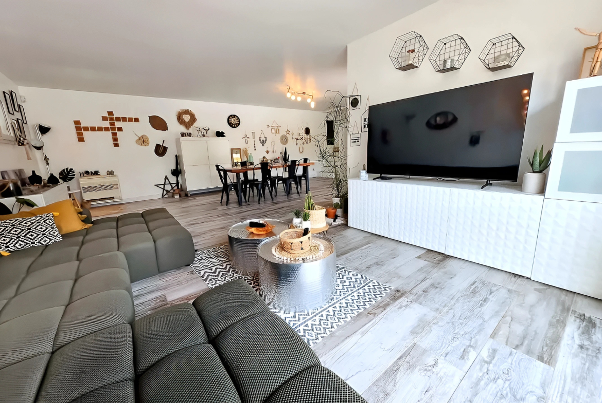 Sa pièce de vie traversante et lumineuse (63 m2) séduit par ses beaux volumes, comprenant une cuisine ouverte sur le salon et la salle à manger, idéale pour recevoir en toute convivialité.