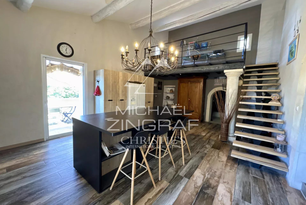 La propriété dispose d’un bel espace convivial autour de la piscine, parfaite pour profiter des journées ensoleillées.