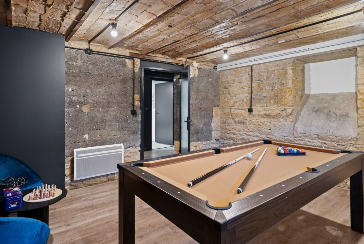 Le sous sol accueille une grande buanderie, une salle de sport avec sauna, une salle de jeux et une magnifique salle cinéma.