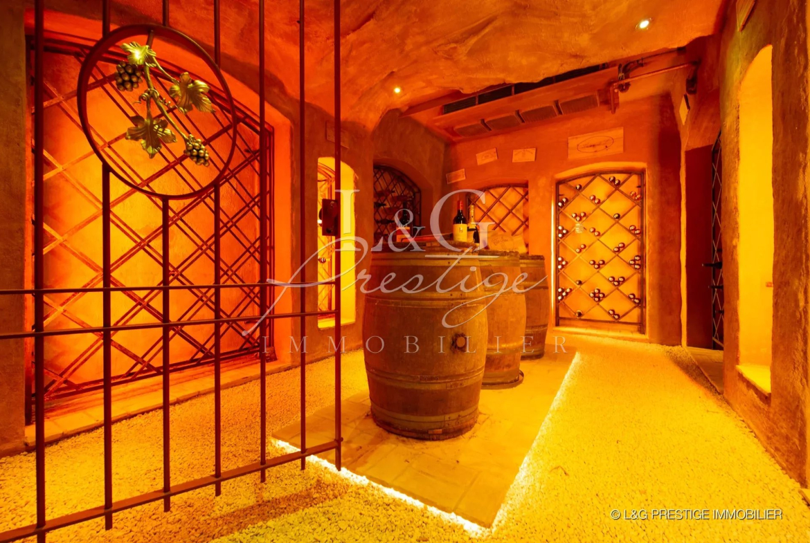 Elle offre un vaste séjour de 115m² avec cheminée permettant de recevoir agréablement vos invités, 5 chambres avec vue mer, une cuisine équipée et une somptueuse cave à vin.