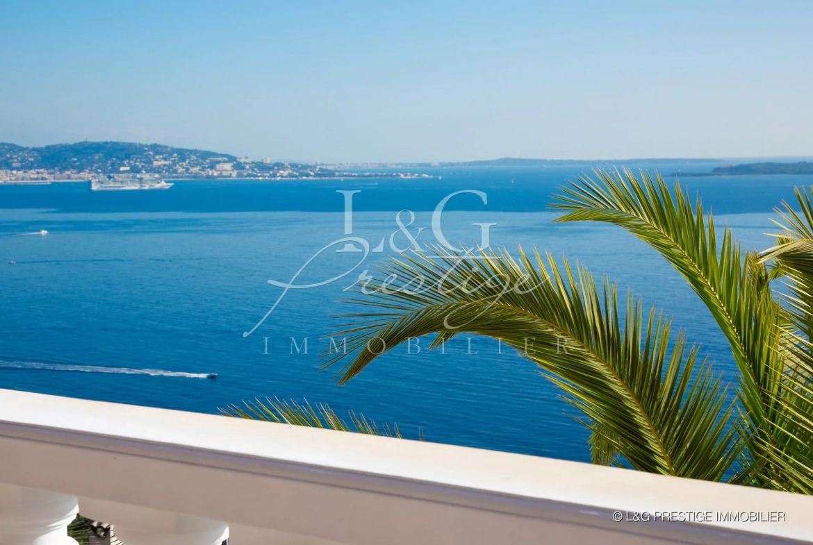 S’ajoutent à cela 130m² d’annexes, pièces de services, studio indépendant, grand garage pour 4 Véhicules, 2 stationnements extérieurs couverts. Côté jardin vous profiterez avec plaisir du calme, de terrasses ensoleillées, d’un espace pétanque, d’une superbe piscine au sel qui borde un confortable pool-house équipé et d’une surface gazonnée avec Hamac. Le tout dans un écrin de verdure, terrain entièrement paysagé. Vue Mer féerique sur la baie de Cannes et Iles de Lérins.