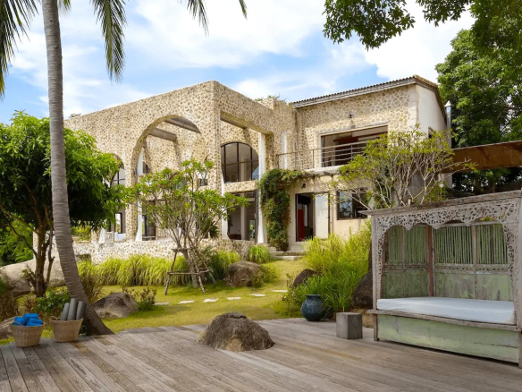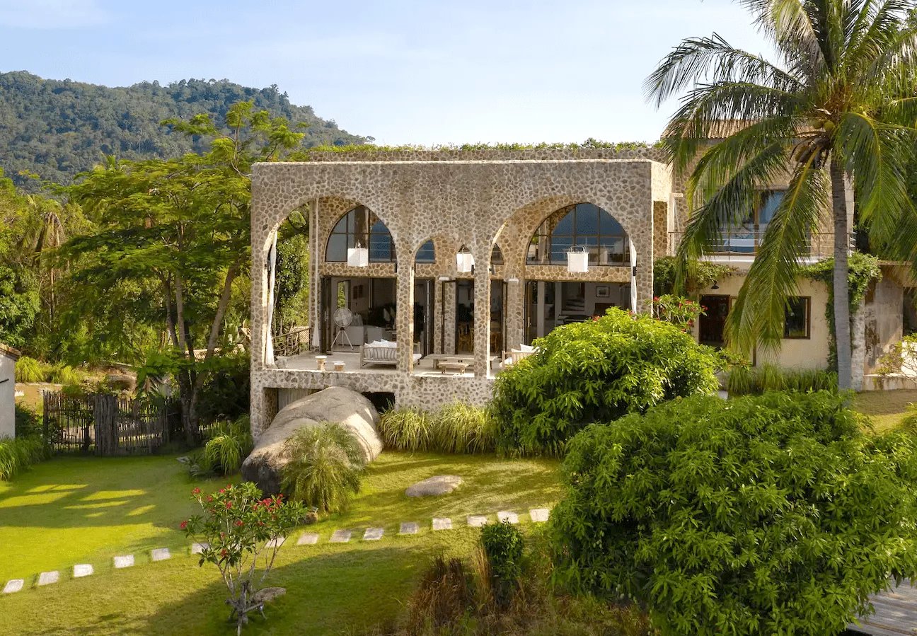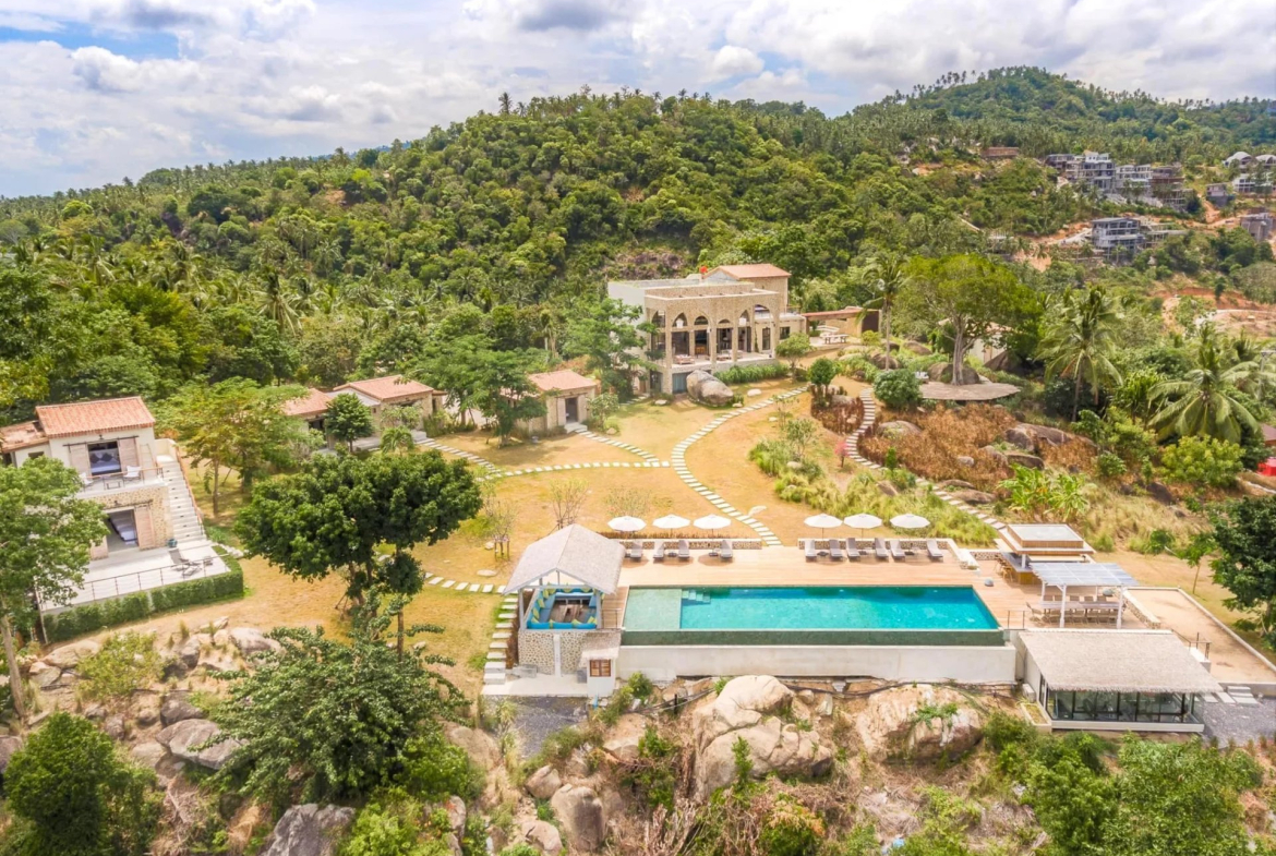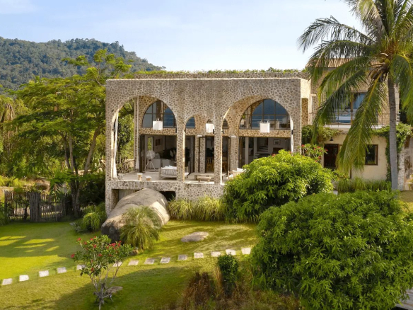 Cette propriété somptueuse présente un design extérieur spectaculaire de style méditerranéen, avec de somptueuses façades en pierre locale et des fenêtres et des portes aux courbes apaisantes. La villa comprend 9 chambres, 10 salles de bains et a une vaste superficie de 740 m² avec un vaste domaine de plus de 12 000 m² de jardins tropicaux avec titre de propriété Chanote.