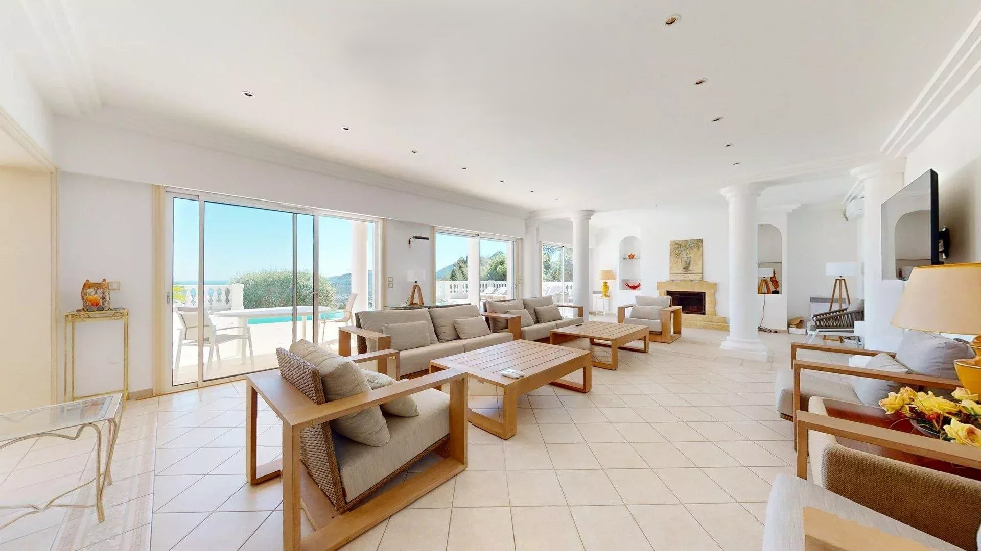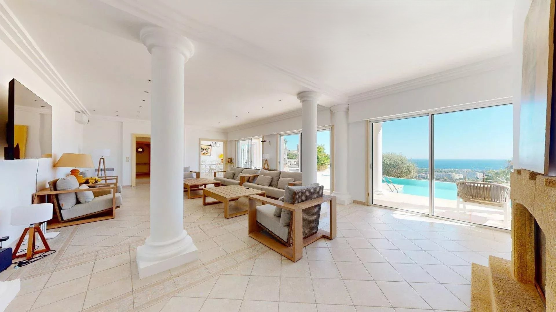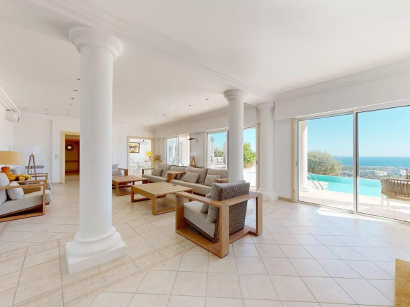 Un vaste séjour baigné de lumière orienté plein sud, face à la mer vous offre une vue époustouflante sur un bleu d’azur.