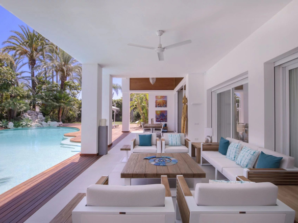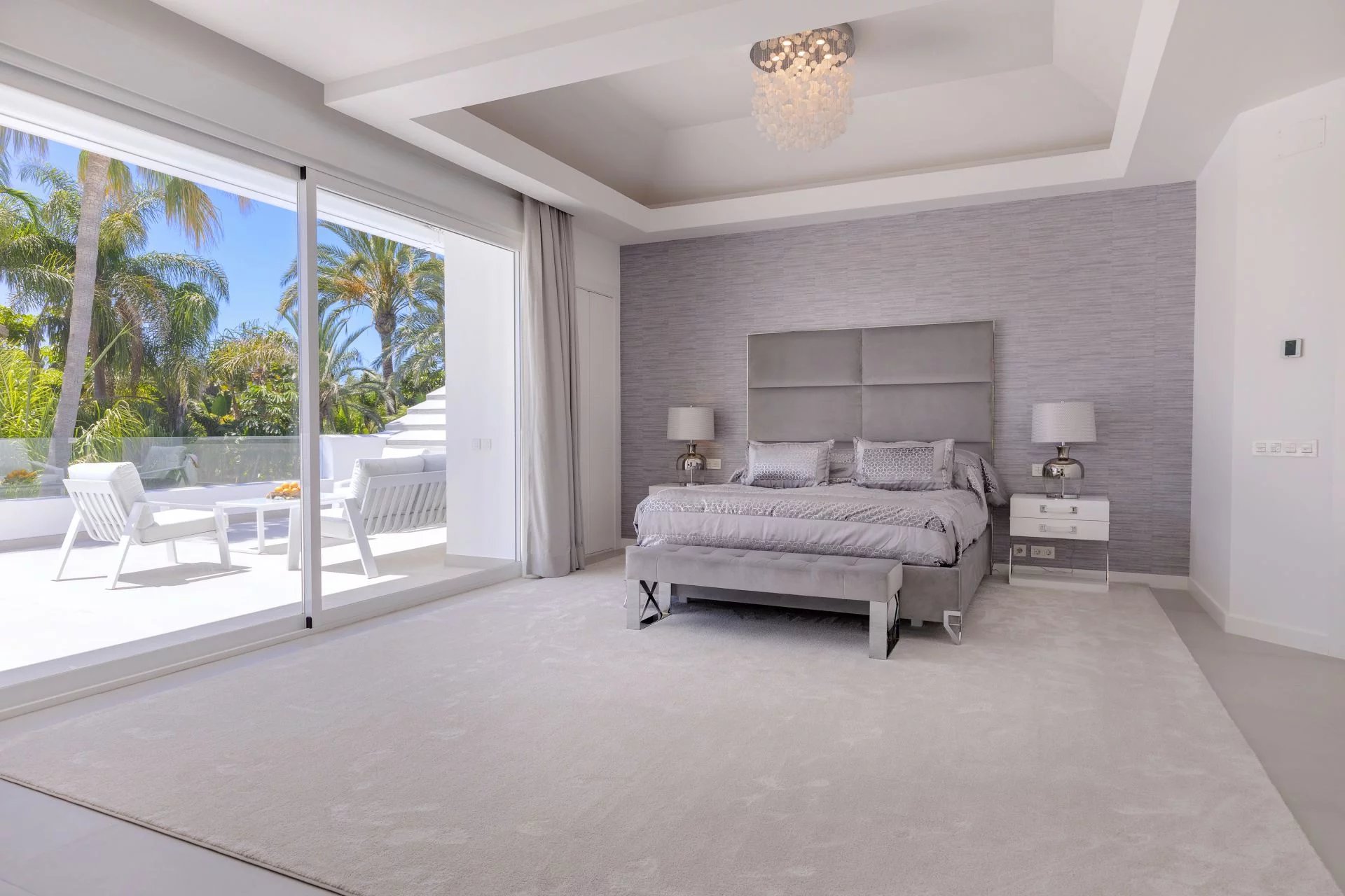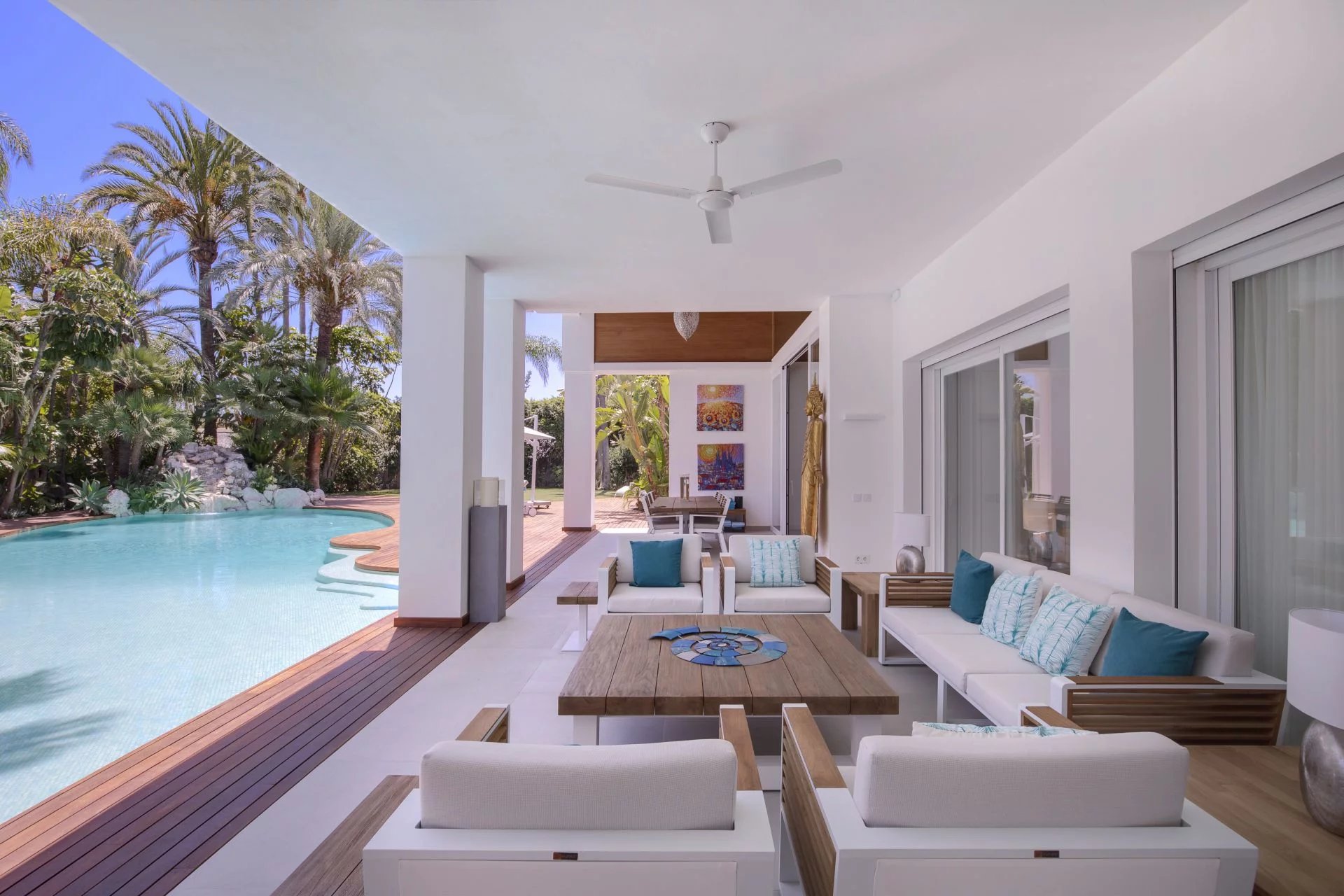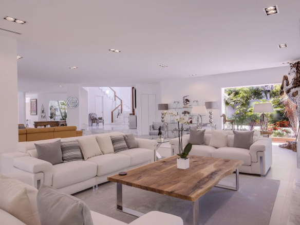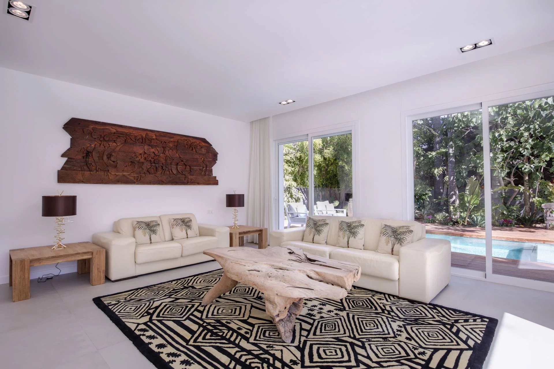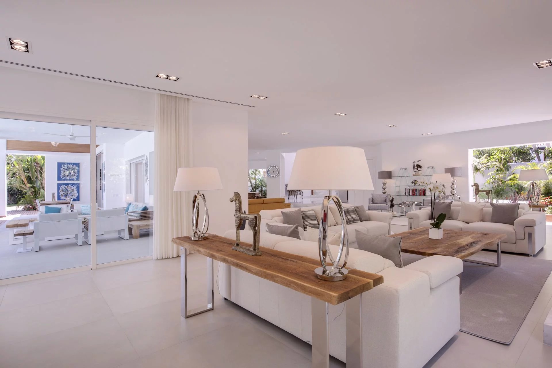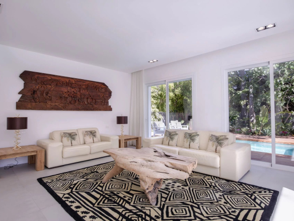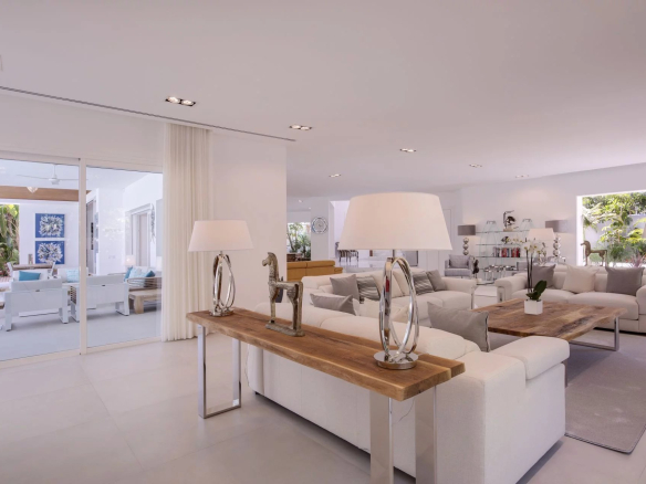 Une villa magnifiquement rénovée située près de la plage de Guadalmina Baja, une urbanisation privée et paisible à seulement 10 minutes de Marbella. Cette propriété de six chambres et six salles de bains se trouve dans des jardins tropicaux privés à la végétation luxuriante. Combinant parfaitement l’architecture classique et moderne, la villa a été entièrement rénovée en 2020 et utilise des matériaux organiques tels que le bois et la pierre pour créer une maison accrocheuse.