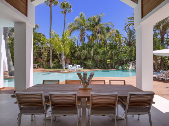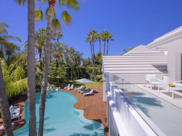 Le jardin dispose de deux piscines, la principale est un lagon calme et une seconde, plus petite, dispose d’un chauffage et d’un jacuzzi pour en profiter toute l’année. Il y a de grandes terrasses couvertes pour profiter du climat andalou et une terrasse en bois accrocheuse entourant la piscine, donnant la sensation d’un refuge de style balinais.