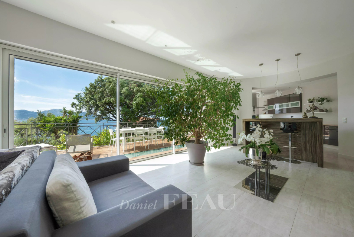Et au dernier étage, un espace détente de type loft de 73m² pouvant faire office de chambre supplémentaire avec terrasse privative offrant une vue panoramique sur la mer et les îles.