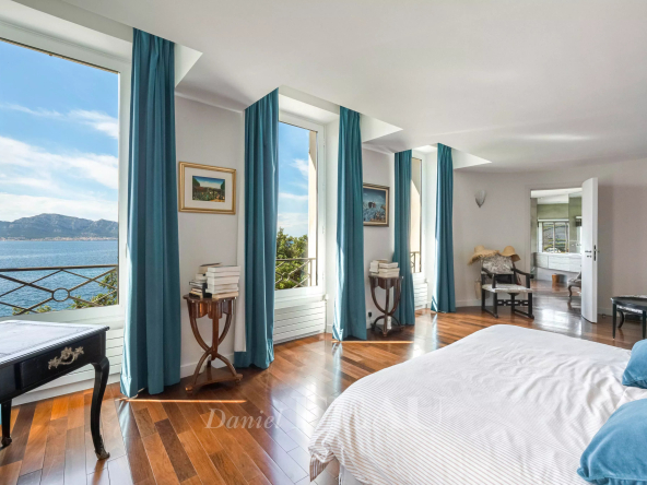 Par le jardin arboré un chemin privé mène à la mer et permet de profiter d’une crique partagée par seulement quelques propriétaires, à l’abri des regards.