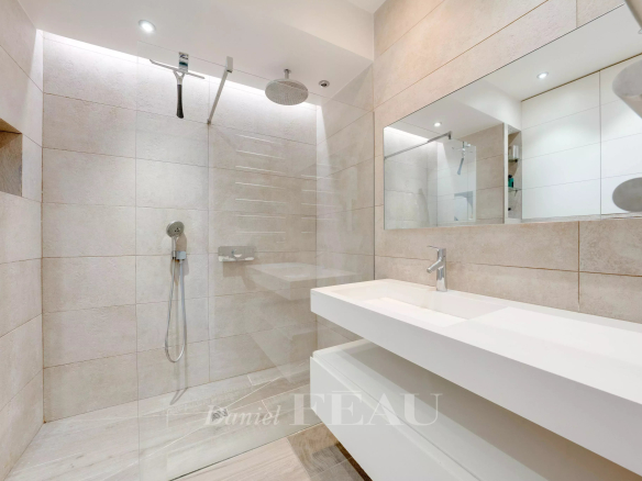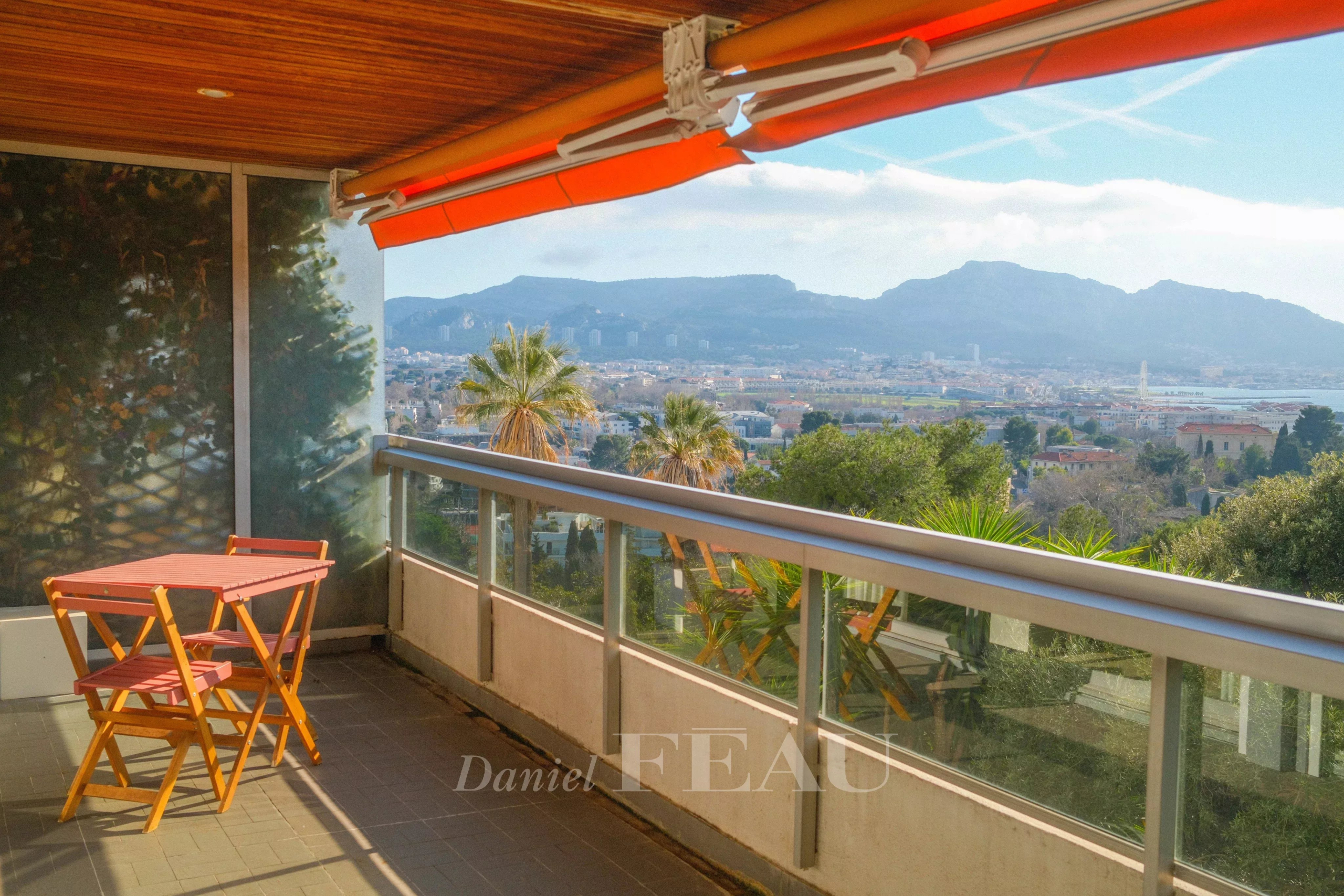 Au calme, au sein d’une résidence prisée du 8ème arrondissement, appartement de 90 m² Loi Carrez offrant une vue dégagée sur la mer, la végétation environnante et la ville.