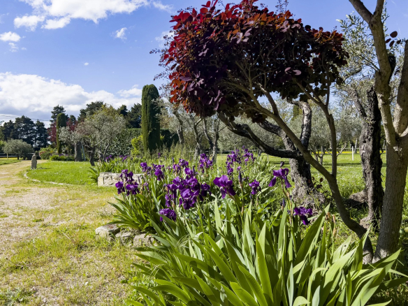 Les extérieurs incarnent l’art de vivre provençal dans toute sa splendeur : jardins paysagers, terrasses ombragées et une piscine de 7 x 14 mètres, parfaitement intégrée dans l’environnement naturel, invitant à la détente et à la contemplation.