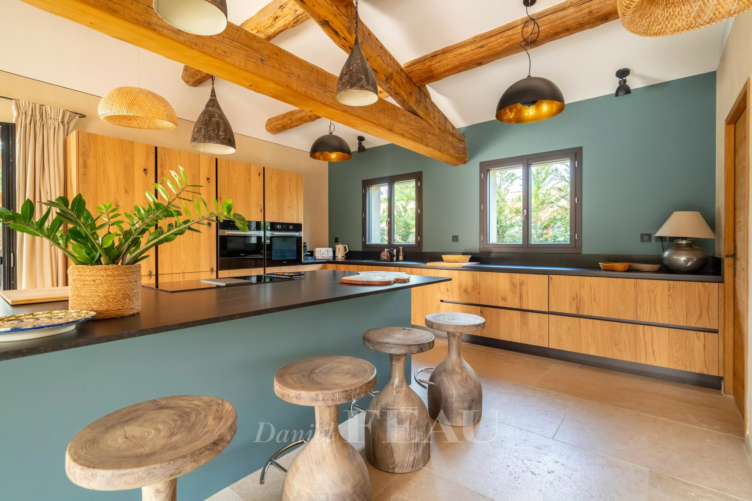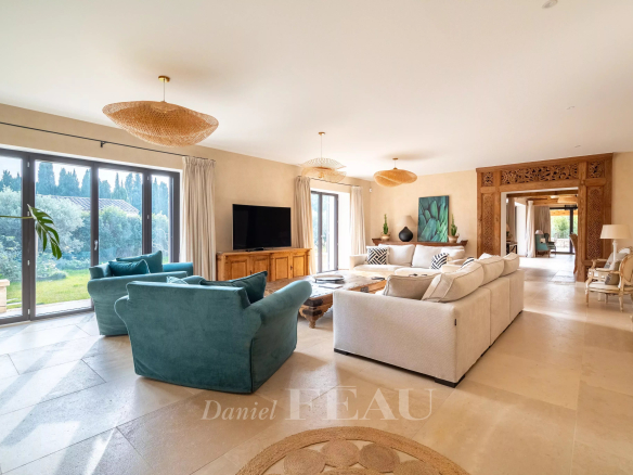 Elevée sur deux niveaux, elle développe plus de 310 m2 habitables sur un jardin clos et paysager de 1 700 m2.