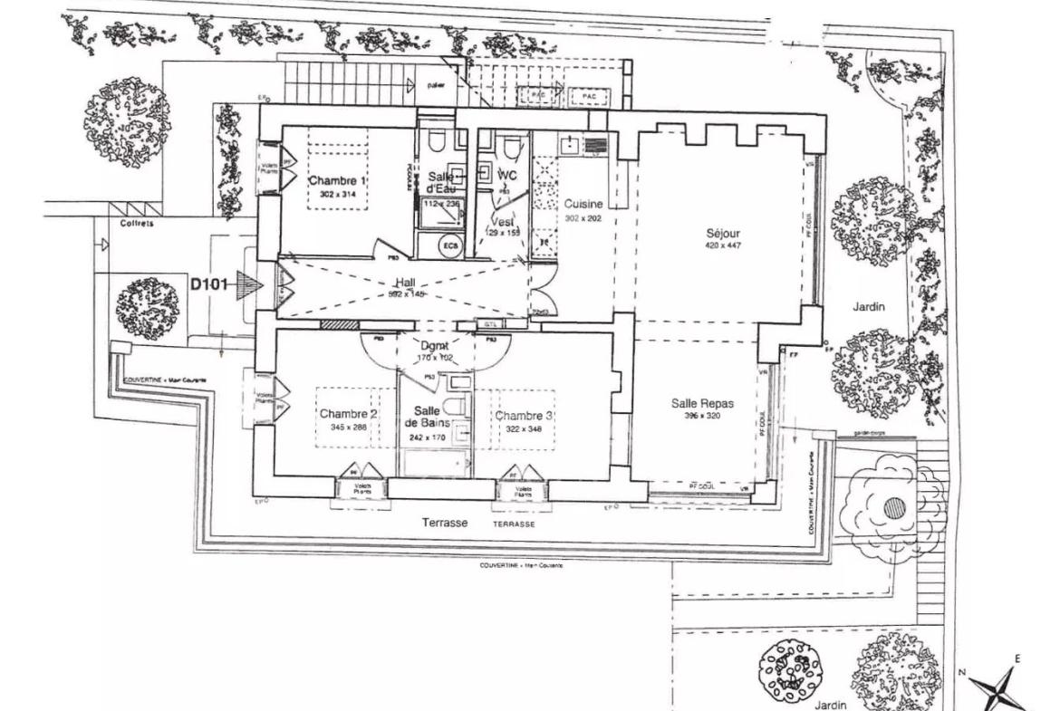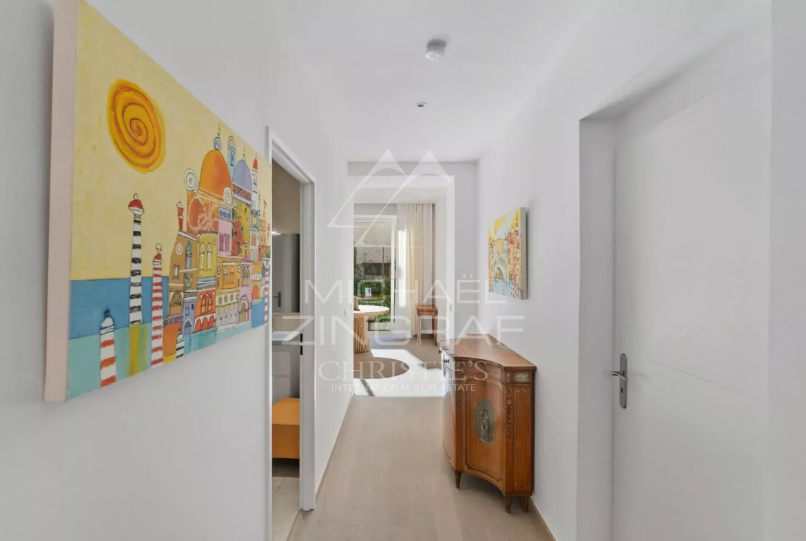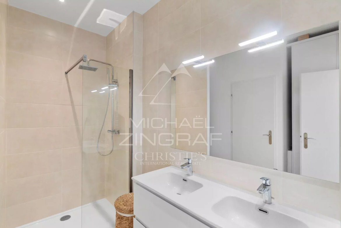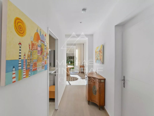 Il se compose d’un séjour lumineux avec cuisine ouverte entièrement équipée, le tout pouvant sur une terrasse et un jardin exposés plein sud, ainsi que de trois belles chambres, chacune avec accès à une terrasse, et de deux salles de bains. Élégant jardin privatif planté d’arbres fruitiers. Garage double.