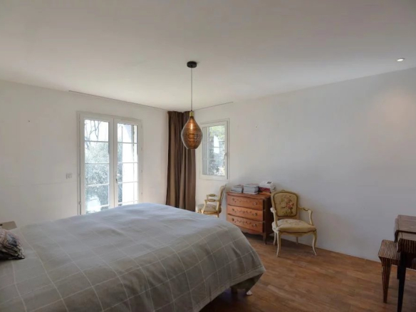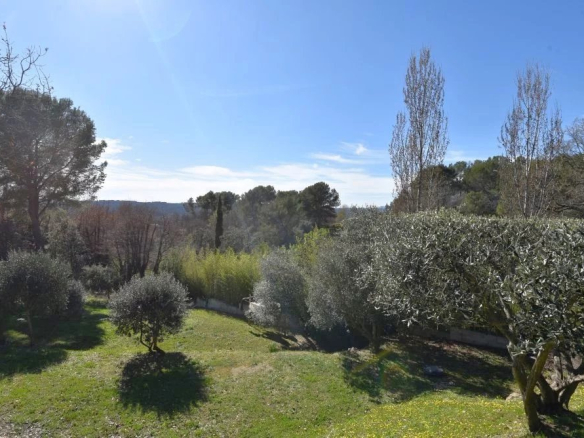 Implantée sur un terrain de 2670 m² arboré d’oliviers, la propriété offre un cadre paisible et verdoyant.