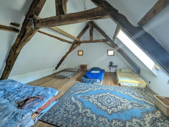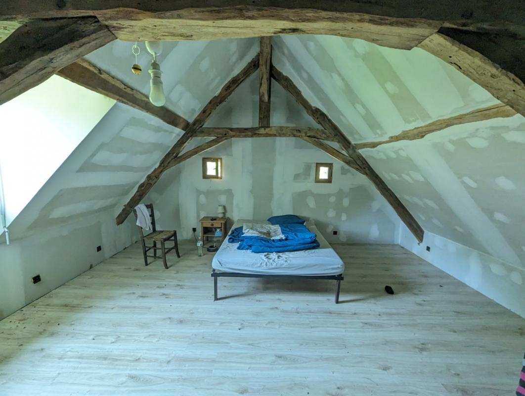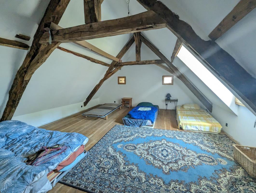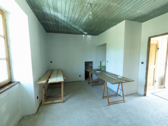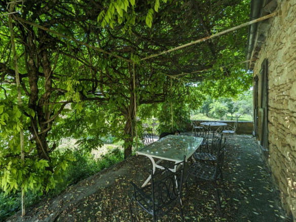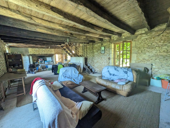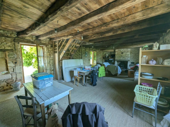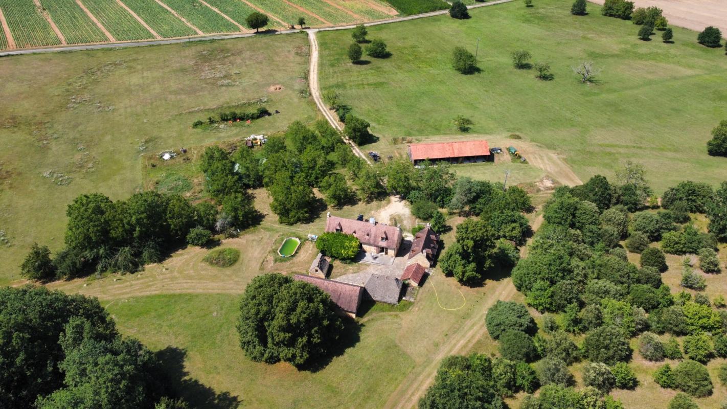 Le charme opère dès l’arrivée, au bout d’un long chemin vous arrivez sur le bâti de la propriété, vous croiserez d’abord le bâtiment le plus récent servant aujourd’hui de rangement et construit dans le style: séchoir à tabac.Vous trouverez ensuite un premier logis en pierre qui demeure rustique mais habitable en l’état, puis, presque au même niveau, la grande maison centrale d’habitation à finir de renover, offrant de beaux volumes et un belle luminosité avec ses ouvertures de part et d’autre, vous trouverez enfin plusieurs autres dependances en pierre fermant la cour intérieure et faisant office de grange