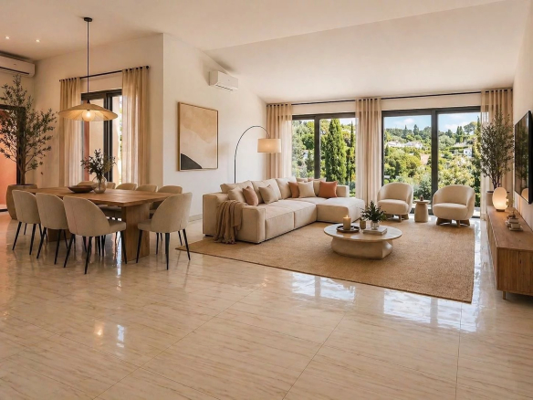 Elle se compose d’une entrée, d’une grande cuisine à aménager, un vaste et lumineux séjour ouvrant sur une belle terrasse avec piscine et vue dégagée, expo SUD/EST, un cellier, une chambre, salle de bains et wc, à l’étage: 3 chambres avec leurs salles de douches et petits balcons.